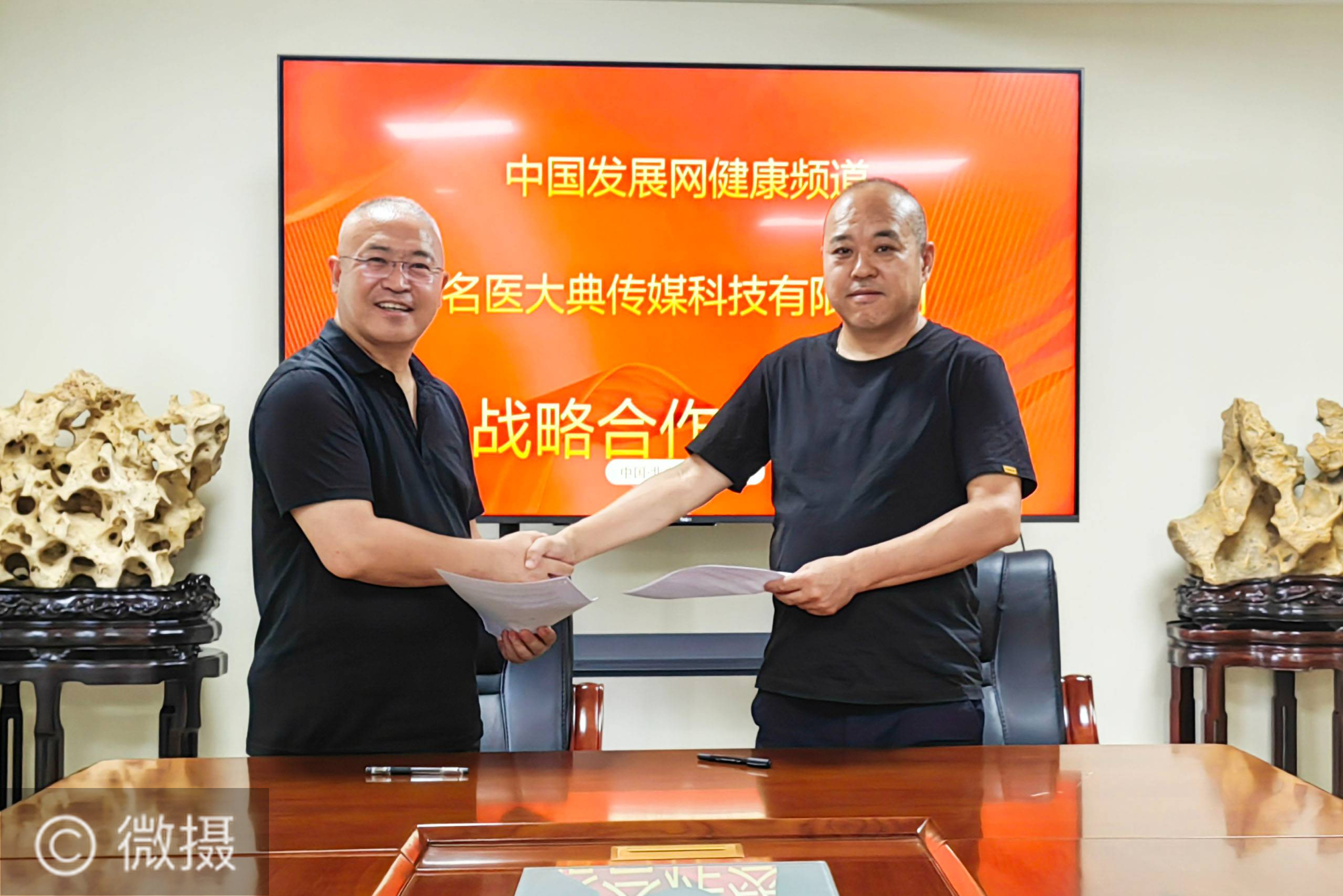 8月30日,中国发展网健康频道与名医大典签署战略合作协议,双方以资源互补、协同创新为原则,联合打造医疗健康领域权威平台,为医疗健康事业注入新动能。图为中国发展网健康频道主编孟永(右)和名医大典董事长何世红(左)在签约仪式上。中国发展网是中国发展改革报社主办的中央级新闻媒体。于晶摄