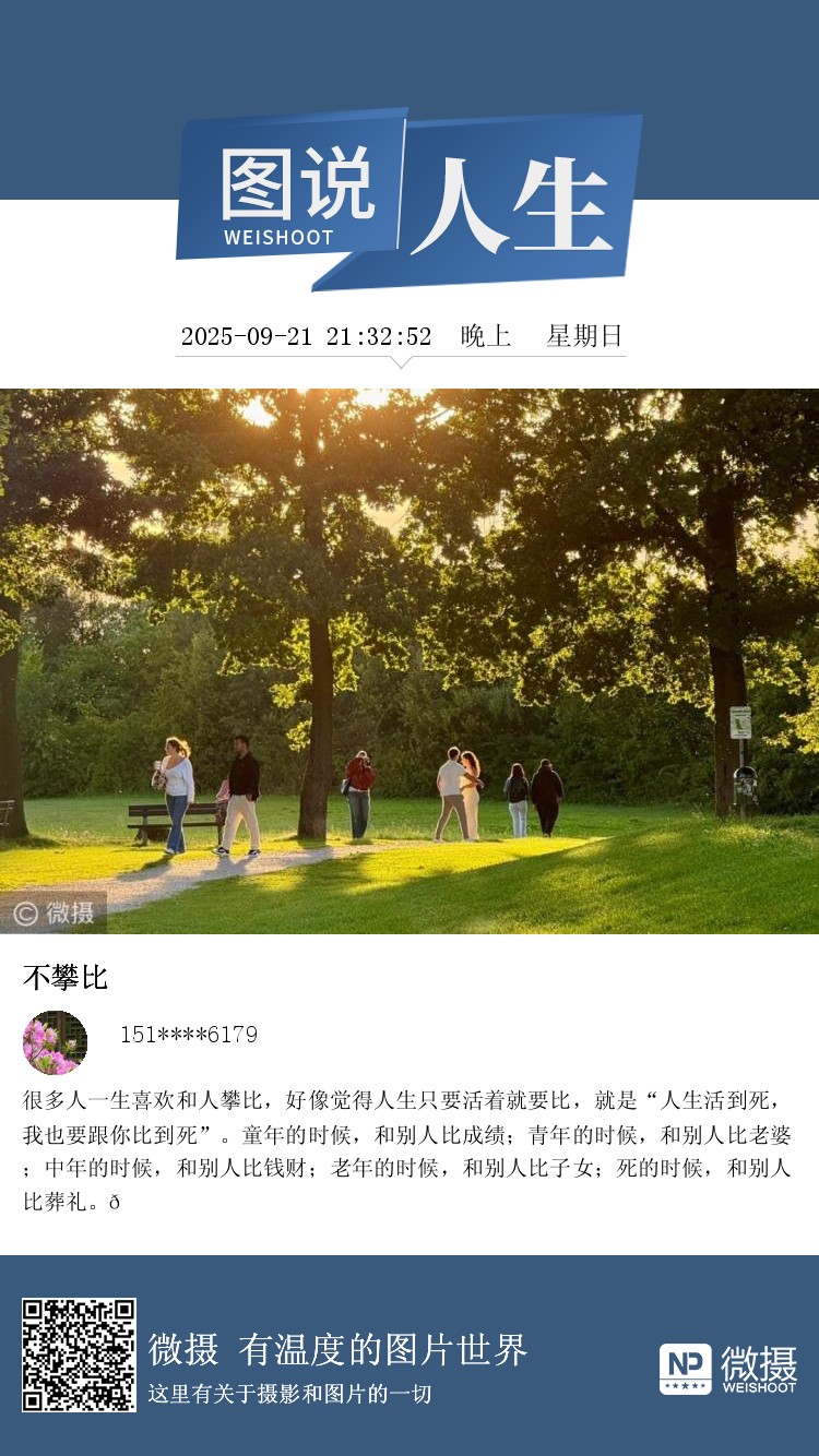 很多人一生喜欢和人攀比,好像觉得人生只要活着就要比,就是“人生活到死,我也要跟你比到死”。童年的时候,和别人比成绩;青年的时候,和别人比老婆;中年的时候,和别人比钱财;老年的时候,和别人比子女;死的时候,和别人比葬礼。💝