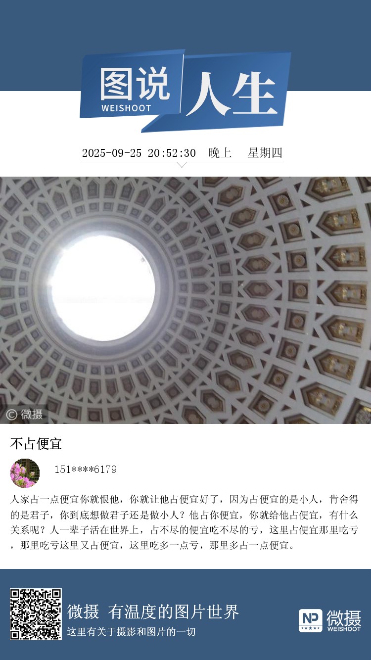 人家占一点便宜你就恨他,你就让他占便宜好了,因为占便宜的是小人,肯舍得的是君子,你到底想做君子还是做小人?他占你便宜,你就给他占便宜,有什么关系呢?人一辈子活在世界上,占不尽的便宜吃不尽的亏,这里占便宜那里吃亏,那里吃亏这里又占便宜,这里吃多一点亏,那里多占一点便宜。