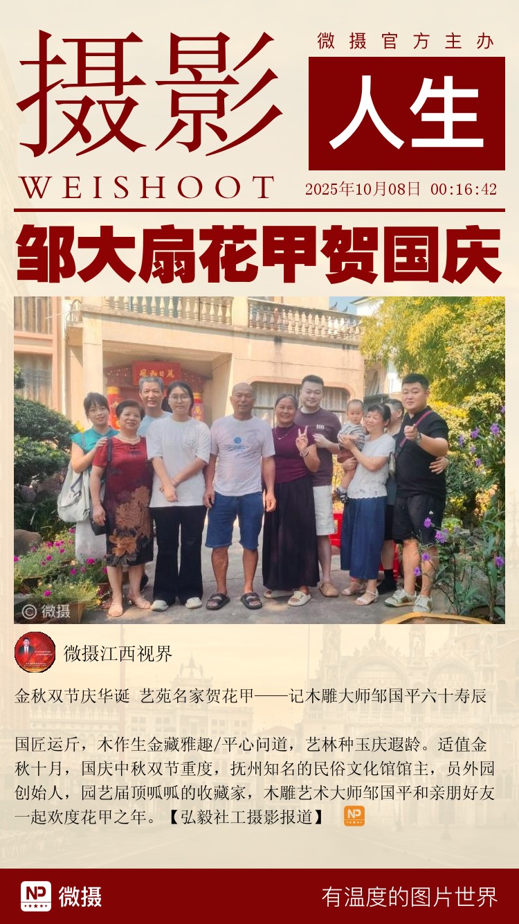 金秋双节庆华诞 艺苑名家贺花甲——记木雕大师邹国平六十寿辰 国匠运斤,木作生金藏雅趣/平心问道,艺林种玉庆遐龄。适值金秋十月,国庆中秋双节重度,抚州知名的民俗文化馆馆主,员外园创始人,园艺届顶呱呱的收藏家,木雕艺术大师邹国平和亲朋好友一起欢度花甲之年。【弘毅社工摄影报道】