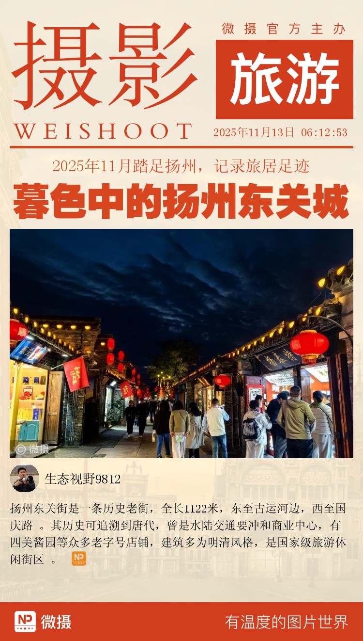 扬州东关街是一条历史老街,全长1122米,东至古运河边,西至国庆路 。其历史可追溯到唐代,曾是水陆交通要冲和商业中心,有四美酱园等众多老字号店铺,建筑多为明清风格,是国家级旅游休闲街区 。