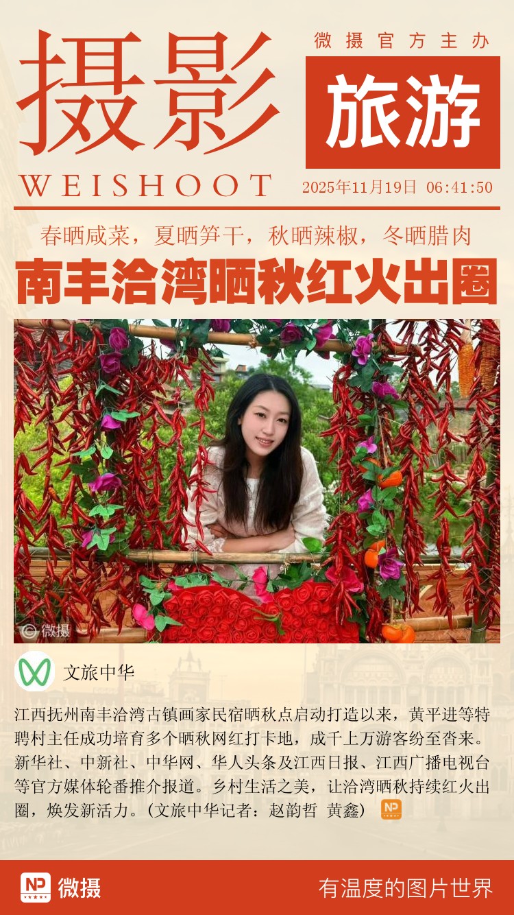 江西抚州南丰洽湾古镇画家民宿晒秋点启动打造以来,黄平进等特聘村主任成功培育多个晒秋网红打卡地,成千上万游客纷至沓来。新华社、中新社、中华网、华人头条及江西日报、江西广播电视台等官方媒体轮番推介报道。乡村生活之美,让洽湾晒秋持续红火出圈,焕发新活力。(文旅中华记者:赵韵哲 黄鑫)