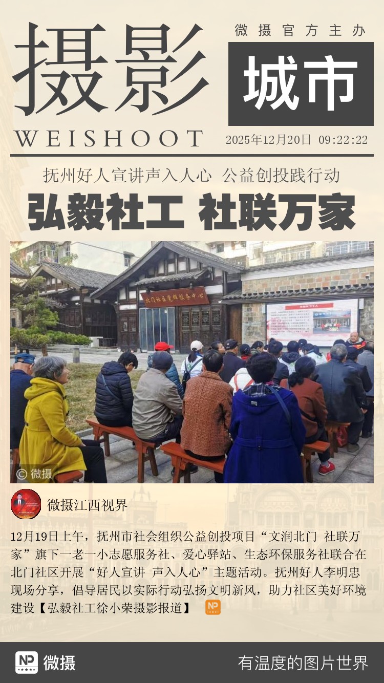 12月19日上午,抚州市社会组织公益创投项目“文润北门 社联万家”旗下一老一小志愿服务社、爱心驿站、生态环保服务社联合在北门社区开展“好人宣讲 声入人心”主题活动。抚州好人李明忠现场分享,倡导居民以实际行动弘扬文明新风,助力社区美好环境建设【弘毅社工徐小荣摄影报道】