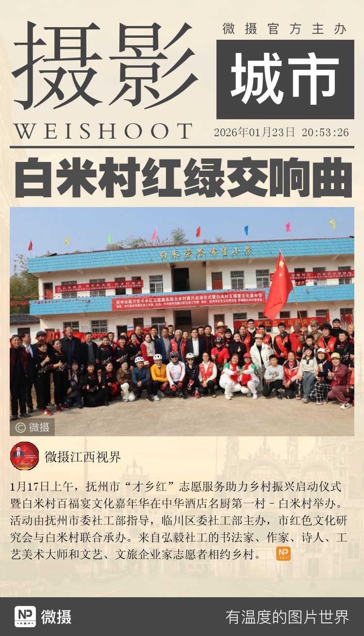 1月17日上午,抚州市“才乡红”志愿服务助力乡村振兴启动仪式暨白米村百福宴文化嘉年华在中华酒店名厨第一村–白米村举办。活动由抚州市委社工部指导,临川区委社工部主办,市红色文化研究会与白米村联合承办。来自弘毅社工的书法家、作家、诗人、工艺美术大师和文艺、文旅企业家志愿者相约乡村。