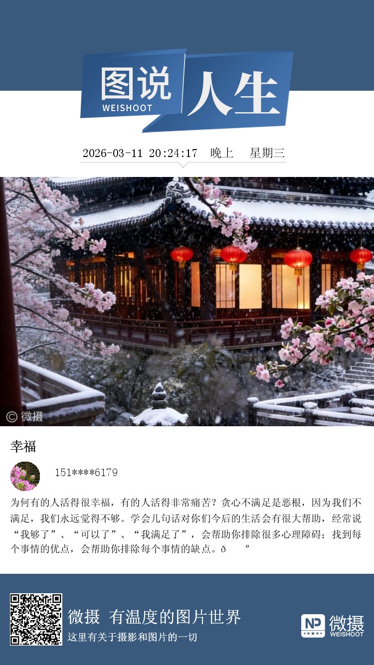 为何有的人活得很幸福,有的人活得非常痛苦?贪心不满足是恶根,因为我们不满足,我们永远觉得不够。学会几句话对你们今后的生活会有很大帮助,经常说“我够了”、“可以了”、“我满足了”,会帮助你排除很多心理障碍;找到每个事情的优点,会帮助你排除每个事情的缺点。🌺