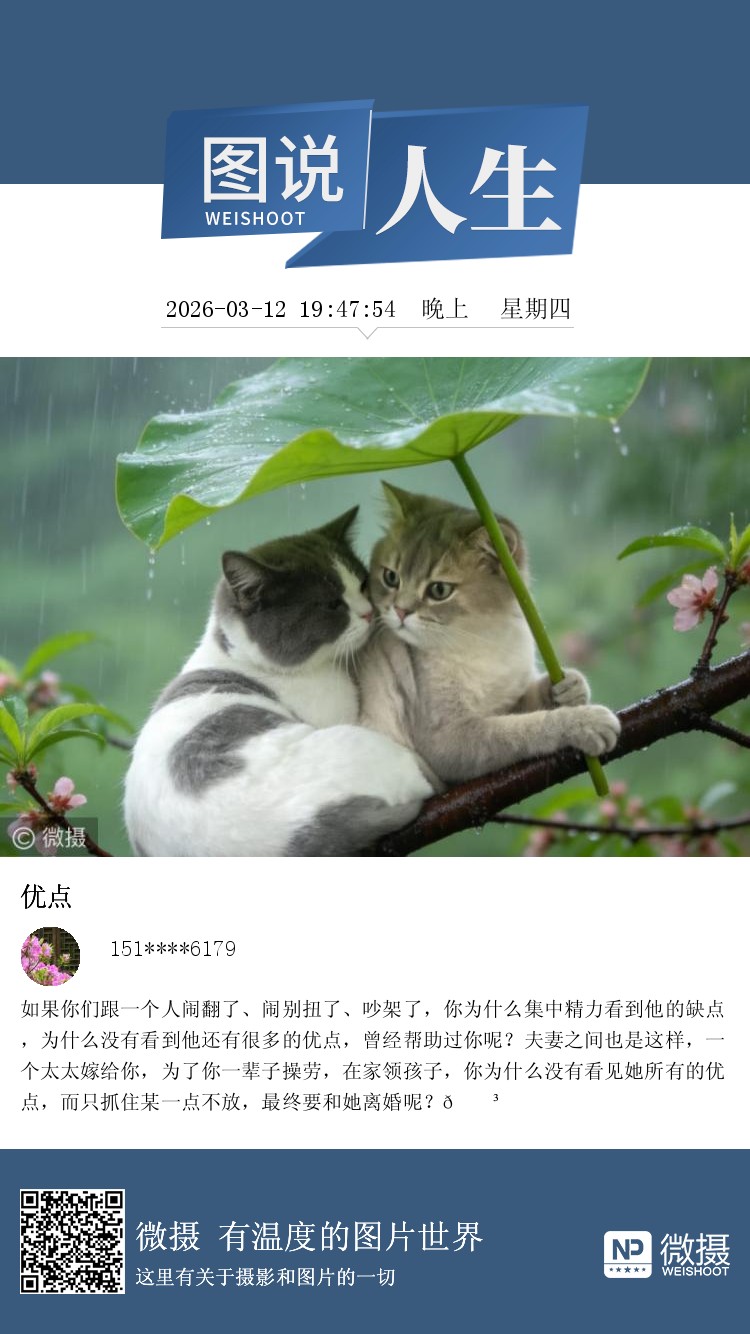 如果你们跟一个人闹翻了、闹别扭了、吵架了,你为什么集中精力看到他的缺点,为什么没有看到他还有很多的优点,曾经帮助过你呢?夫妻之间也是这样,一个太太嫁给你,为了你一辈子操劳,在家领孩子,你为什么没有看见她所有的优点,而只抓住某一点不放,最终要和她离婚呢?🌳