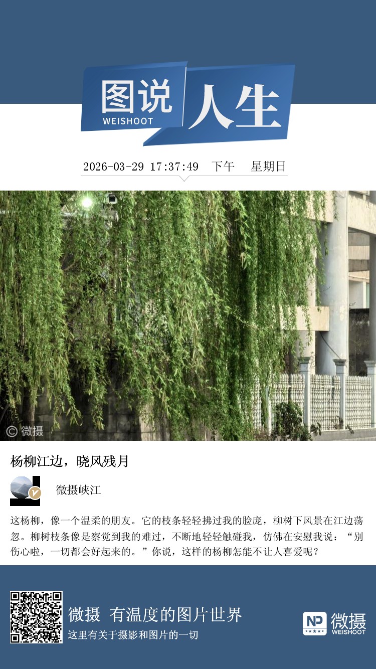 这杨柳,像一个温柔的朋友。它的枝条轻轻拂过我的脸庞,柳树下风景在江边荡忽。柳树枝条像是察觉到我的难过,不断地轻轻触碰我,仿佛在安慰我说:“别伤心啦,一切都会好起来的。”你说,这样的杨柳怎能不让人喜爱呢?
