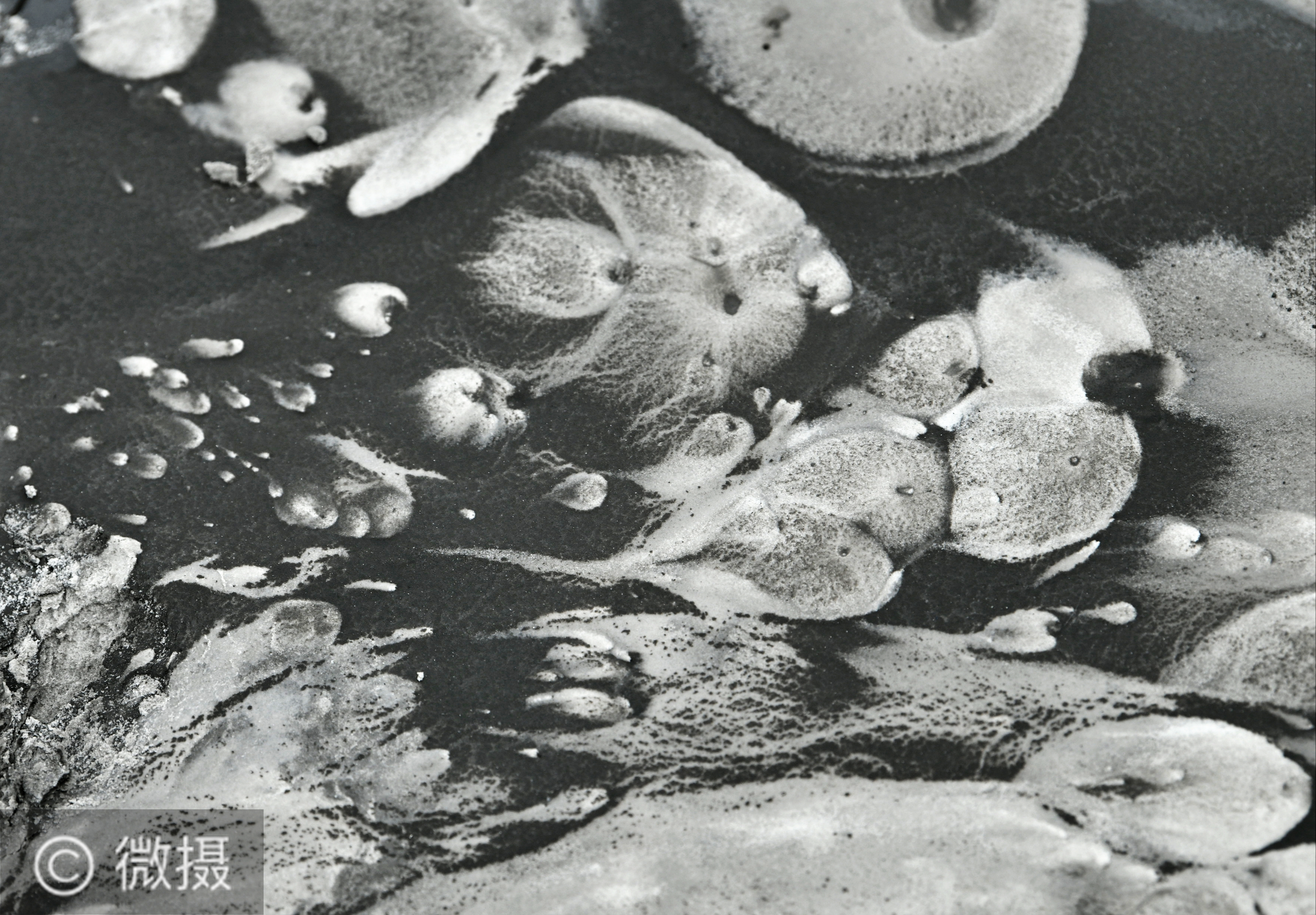 废去的矿渣在阳光的照印下显现出奇妙的图像,如海中漂漂的海母。