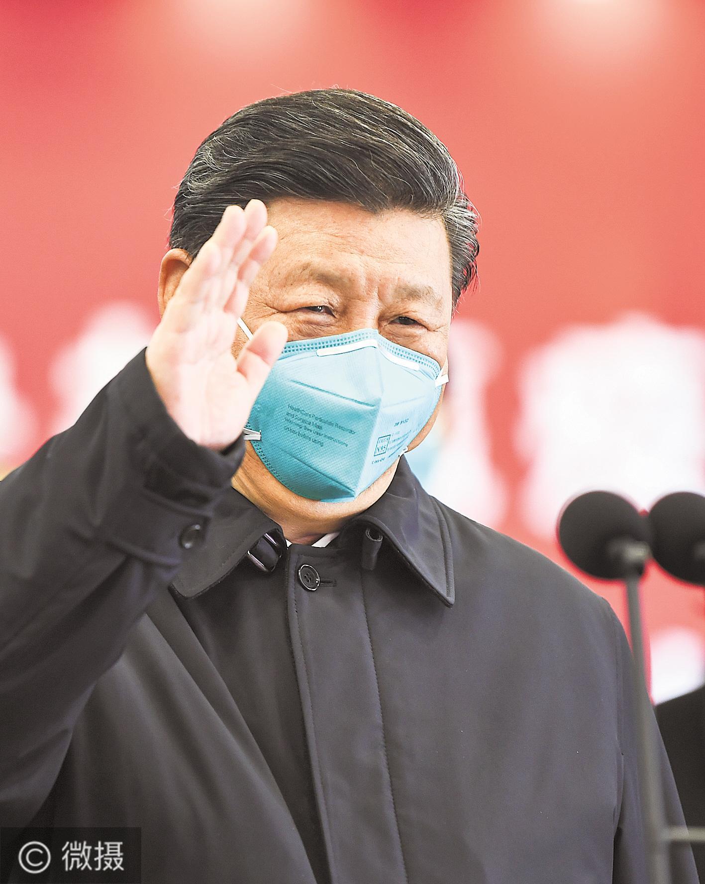 3月10日,中共中央总书记、国家主席、中央军委主席习近平专门赴湖北省武汉市考察新冠肺炎疫情防控工作。图为习近平在火神山医院指挥中心视频连线感染科病房,与病房内患者和医务人员亲切交流。(新华社发)