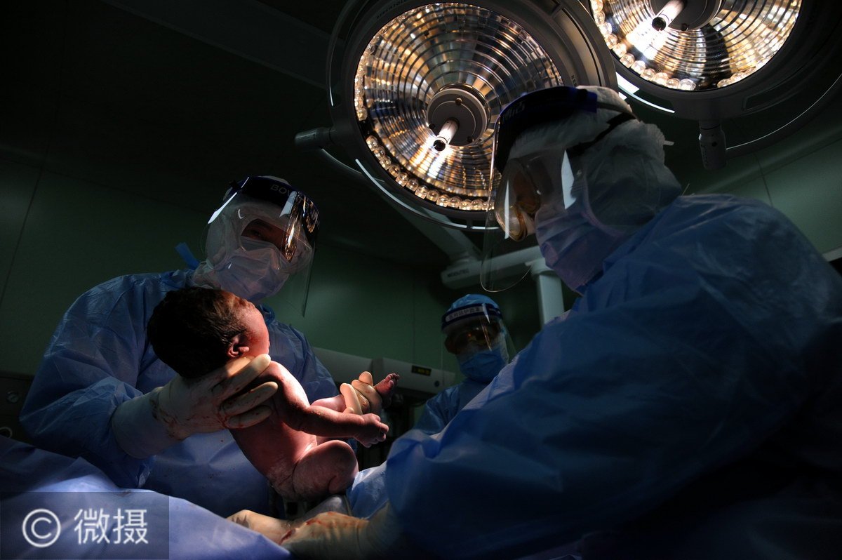 《新生命在隔离区内降临》 3月4日上午,武汉协和医院西院4楼产科手术室,一名新生儿降临在隔离区内,新生命预示着新希望。黑龙江日报特派武汉记者 郭俊峰 摄影