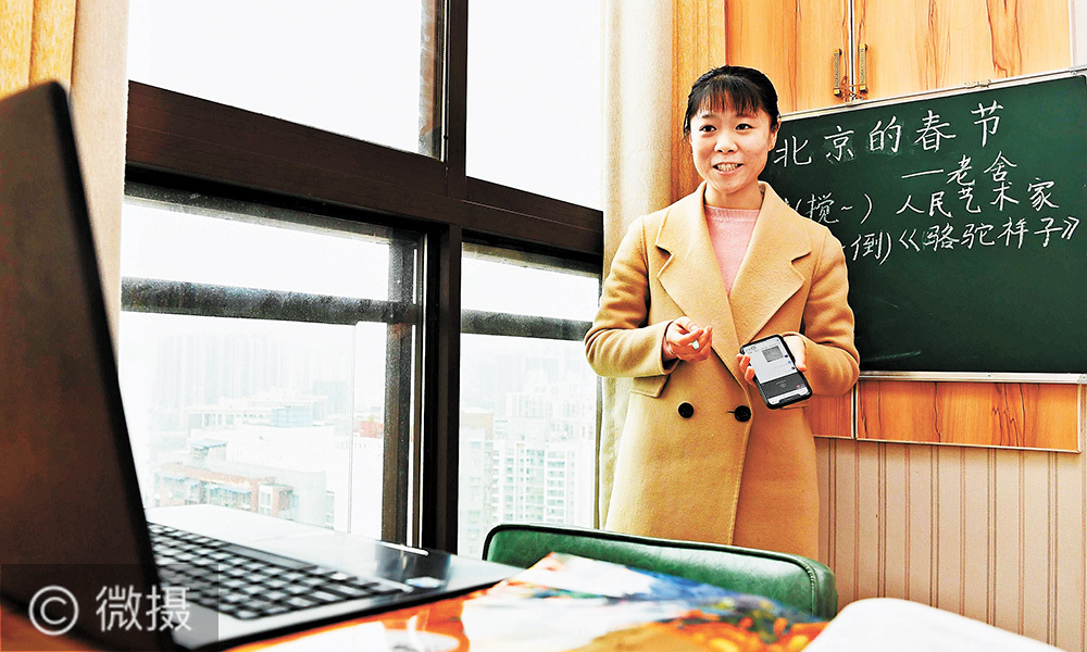 3月2日上午,重庆市九龙坡区重庆铁路小学六年级7班语文老师程玉,通过视频为学生进行网上授课。根据教育部以及重庆市提供的课程资源,按照国家课程方案和学科课程标准要求,重庆市教科院编制了各学段、各年级及各学科教学进度指导意见表, 重庆日报通讯员 周舸 摄