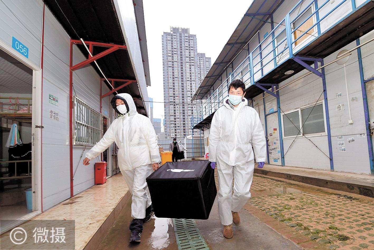3月2日,武汉市汉阳区滞汉人员临时集中安置点,工作人员为滞汉人员送餐。(湖北日报全媒记者 李溪 摄)