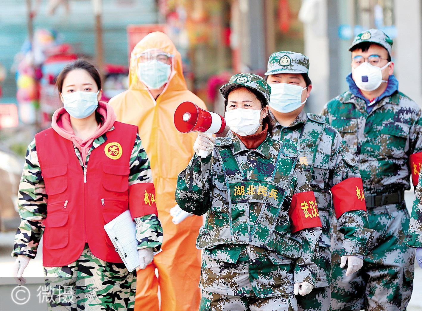 2月20日,武汉市江岸区人武部组织民兵在后湖街建设新村社区宣传抗疫知识。疫情防控战中,该区人武部每天组织300多名民兵,24小时值守全区17个街道52个执勤点,做实各项防控工作。(湖北日报全媒记者 张鸿 通讯员 袁一波 李剑锋 摄)