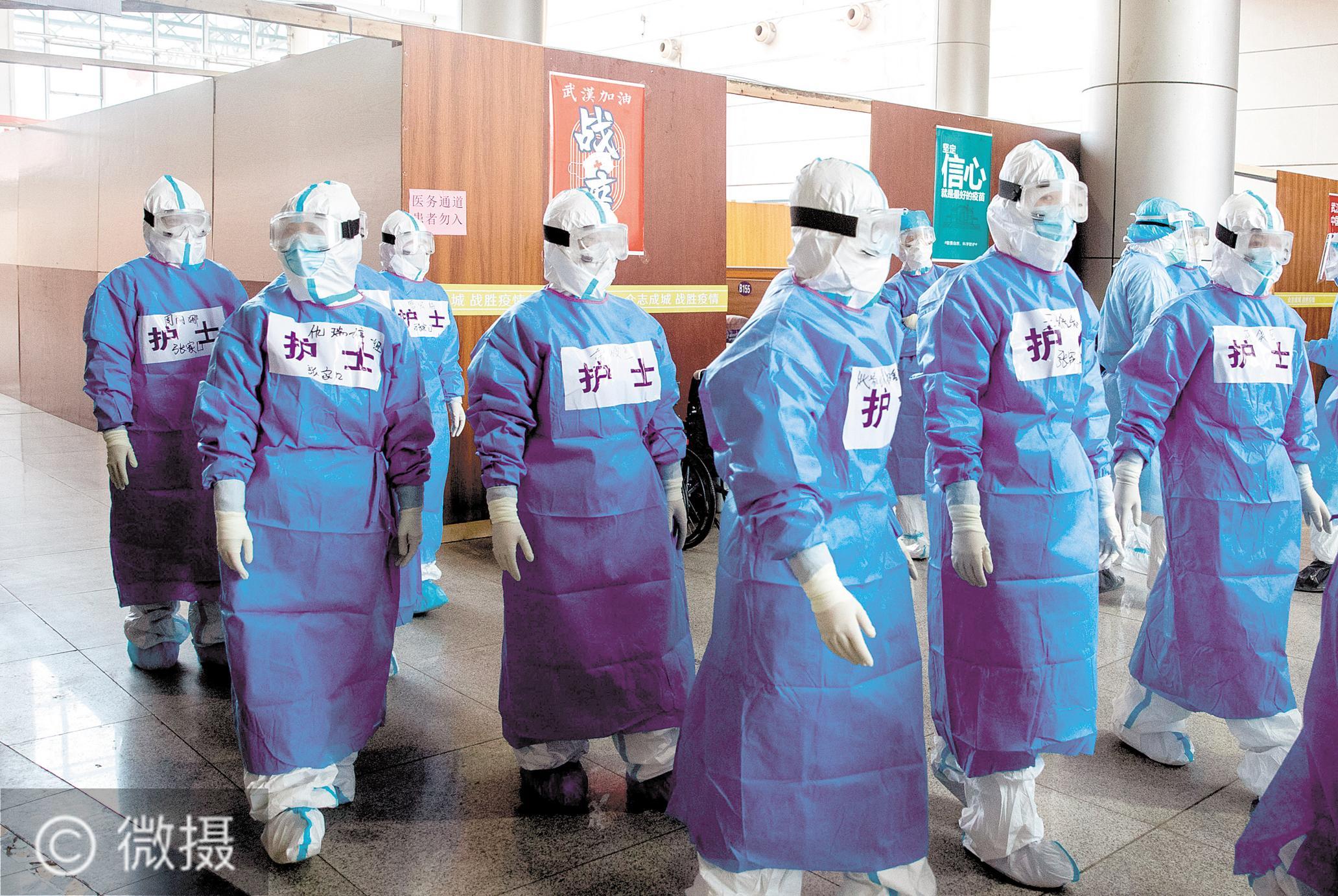 2月12日,武汉江岸塔子湖方舱医院,第一次进舱的河北医疗队护士们在熟悉病房环境。当天,塔子湖方舱医院正式开始收治患者。天津医疗队和河北医疗队分别接管其中的A、B两个病区。湖北日报全媒记者 柯皓 摄