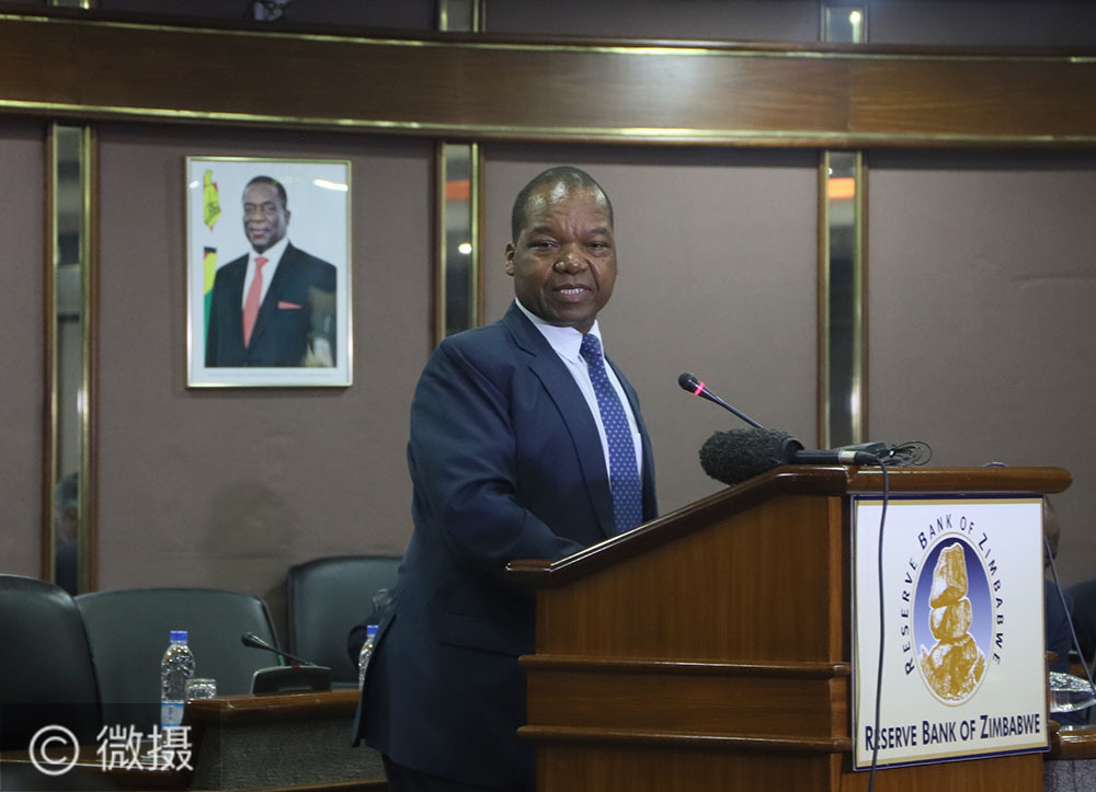2月17日,在津巴布韦首都哈拉雷,津巴布韦储备银行(央行)行长约翰·曼古迪亚宣读货币政策报告。约翰·曼古迪亚当日发表货币政策报告时表示,该国2019年开始推行的“去美元化”举措进展顺利。新华社发(肖恩·朱萨摄)