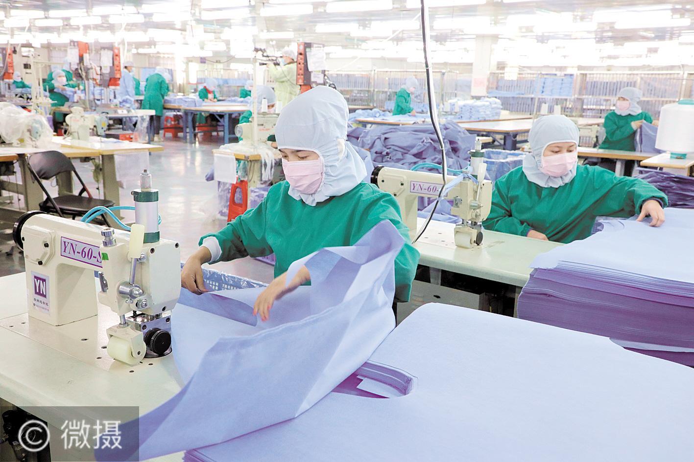2月18日上午,仙桃誉诚公司,刚出产的5500件医用防护服装车发运。 “下午还将有6500件交货。”总经理周利荣声音嘶哑。近5天,该公司每天出产1.2万件医用防护服。仙桃无纺布企业开足马力,赶制医用防护服。 (视界网 刘贤双 摄)