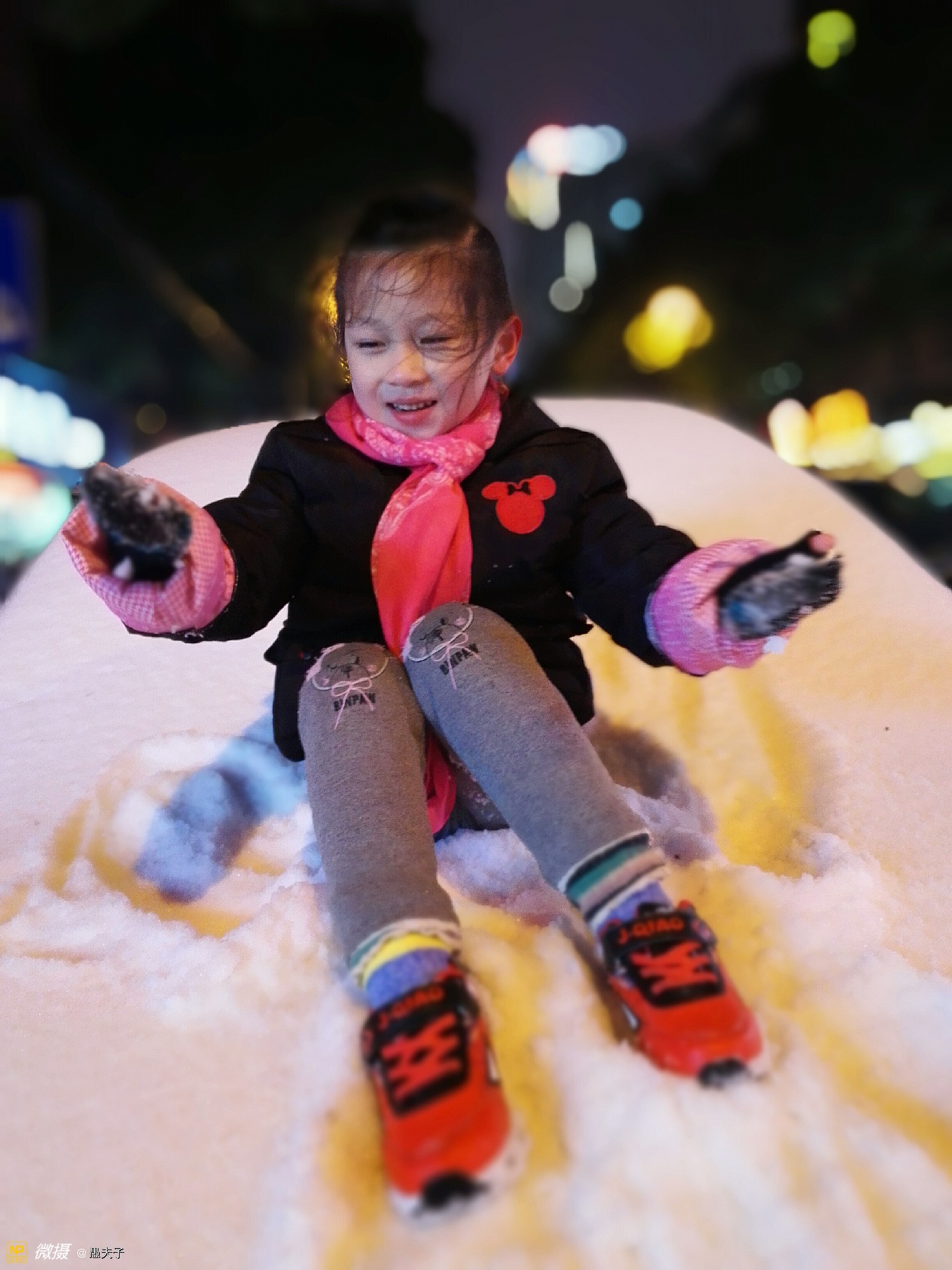手机拍:巴陵飘雪小妞妞与冰雪首次亲密接触