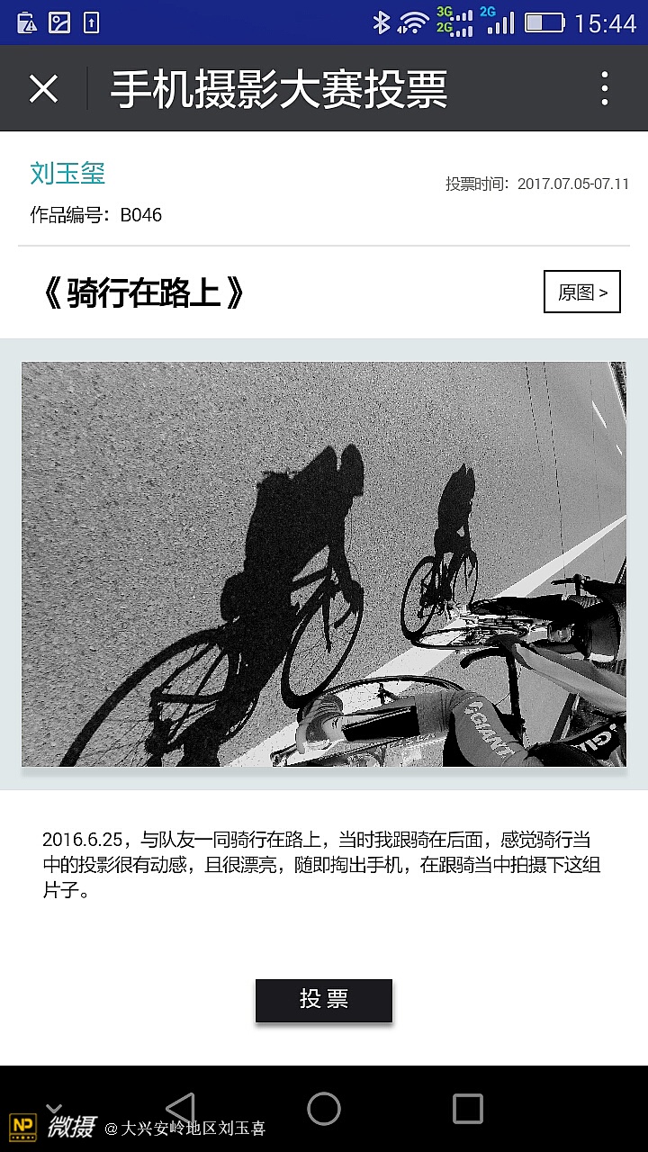 我的‘骑行在路上’获得人像摄影比赛一等奖