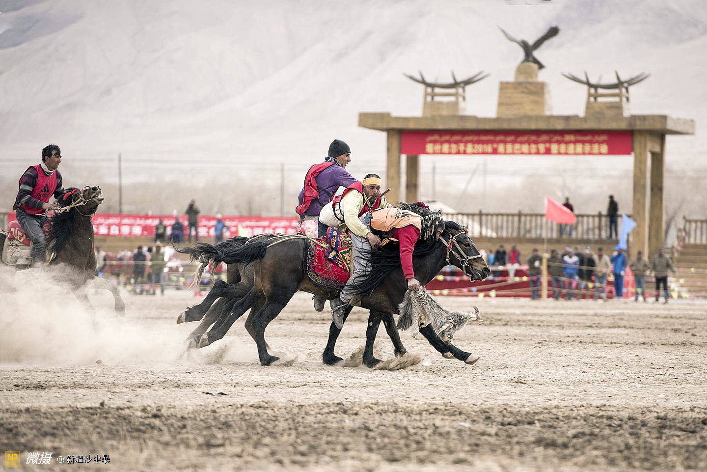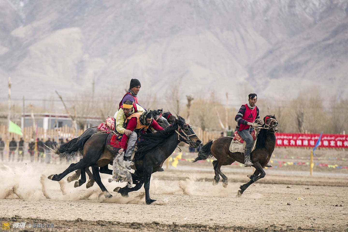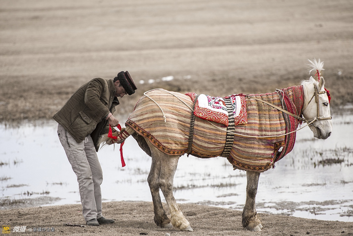 塔吉克族男人骏马与羊
