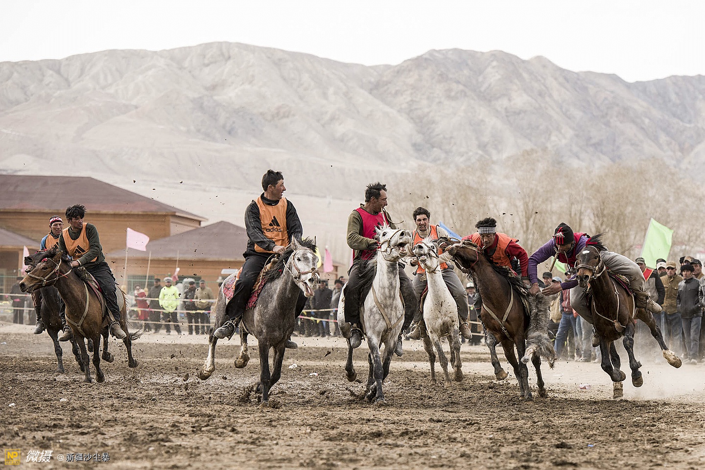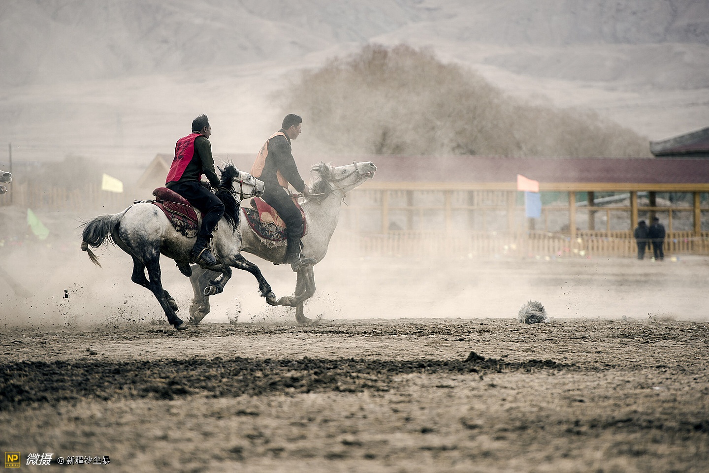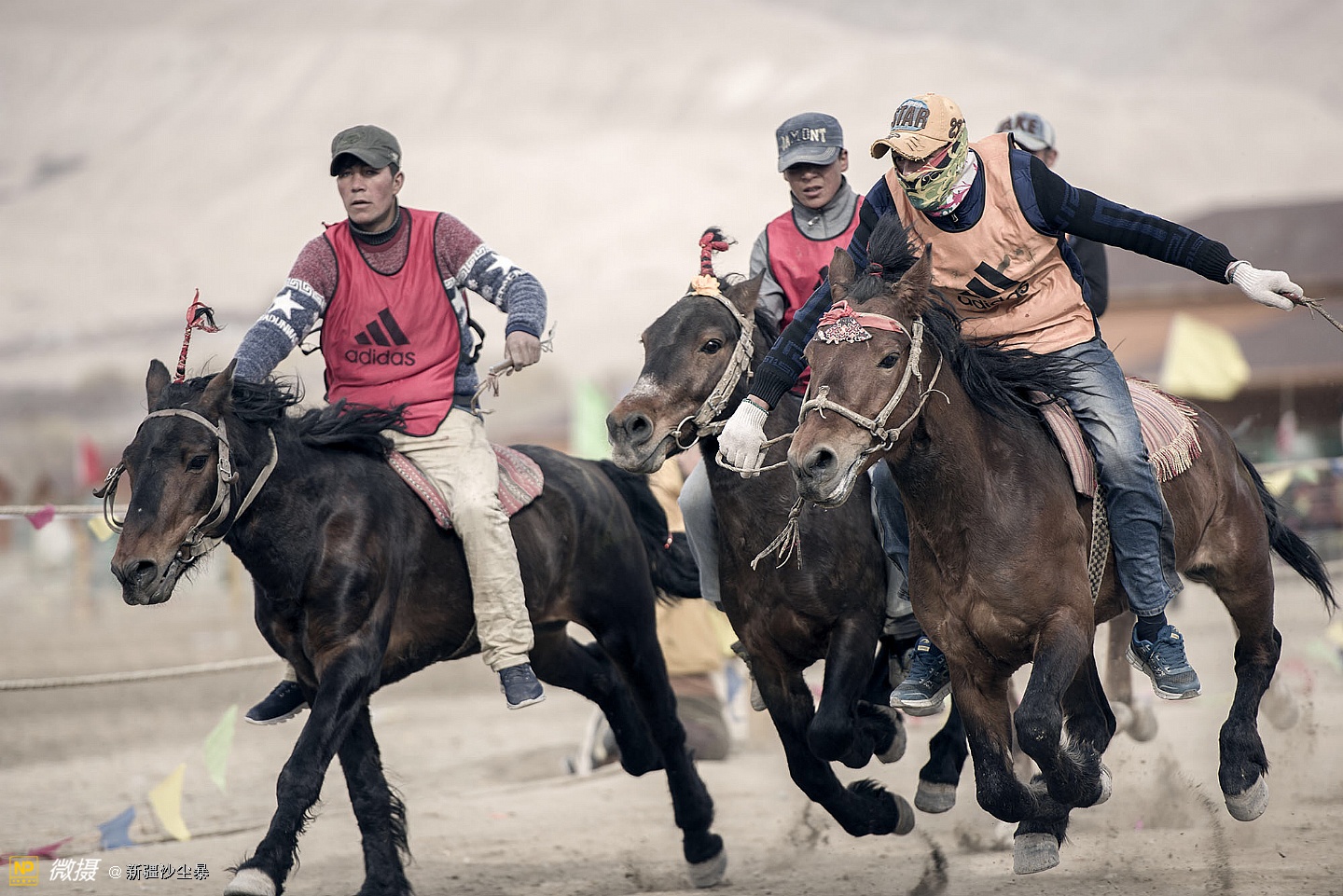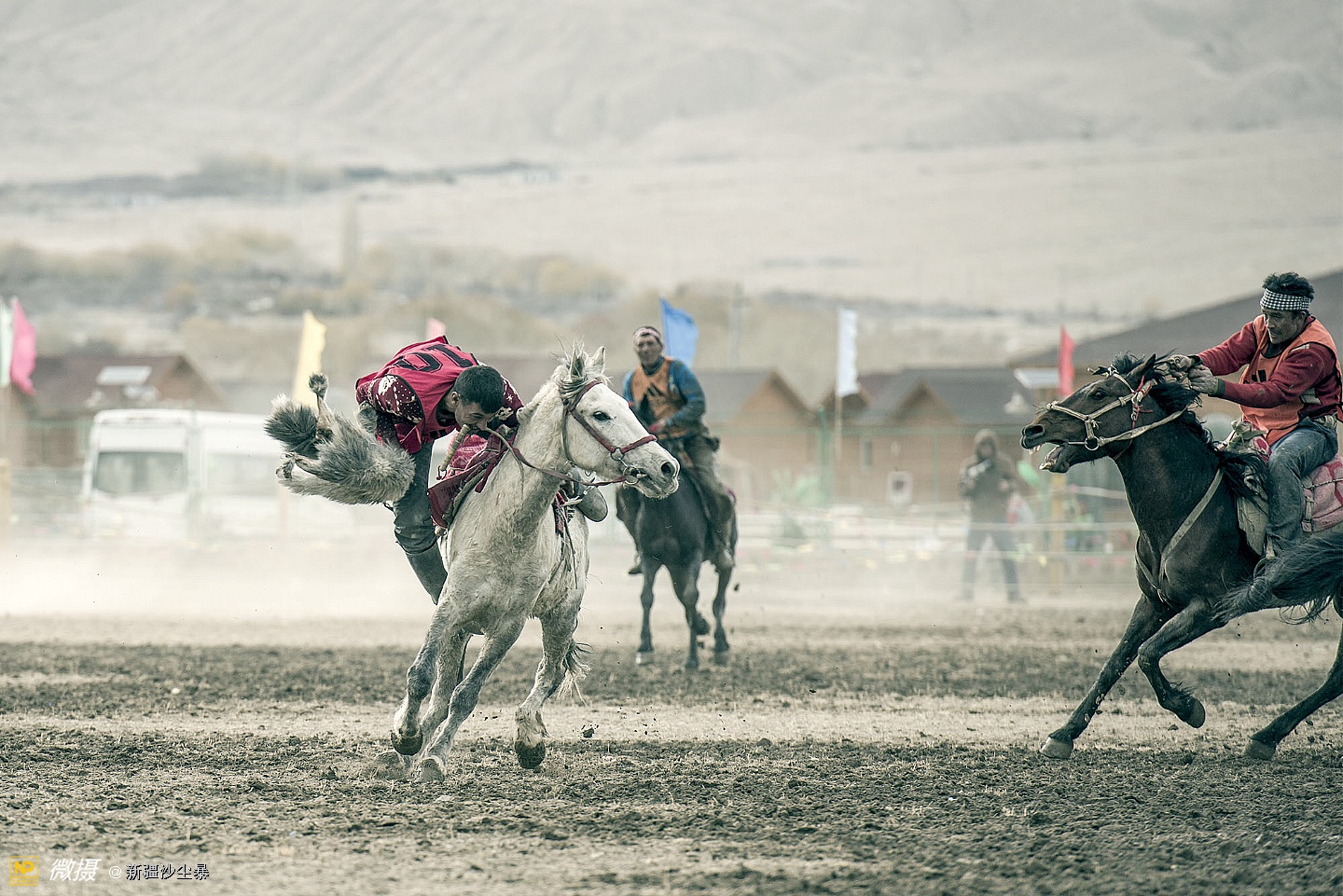 塔吉克族男人骏马与羊