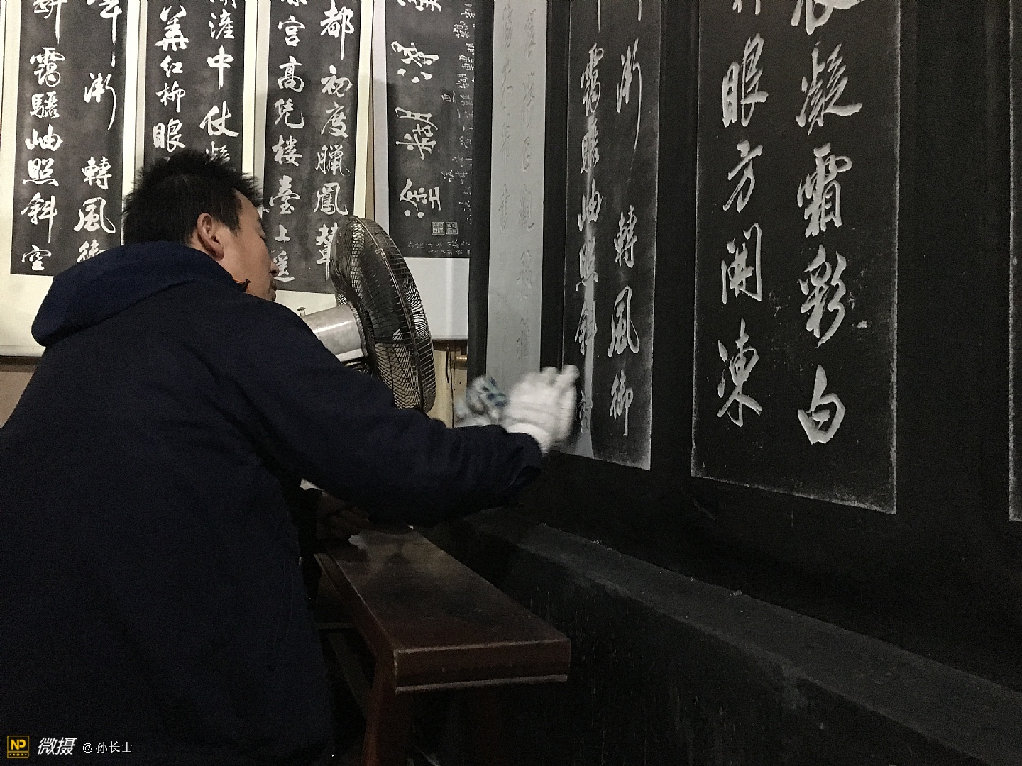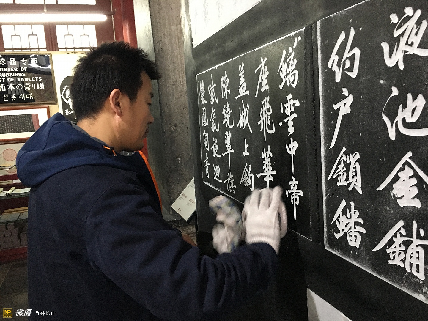 西安碑林拓片师傅在工作