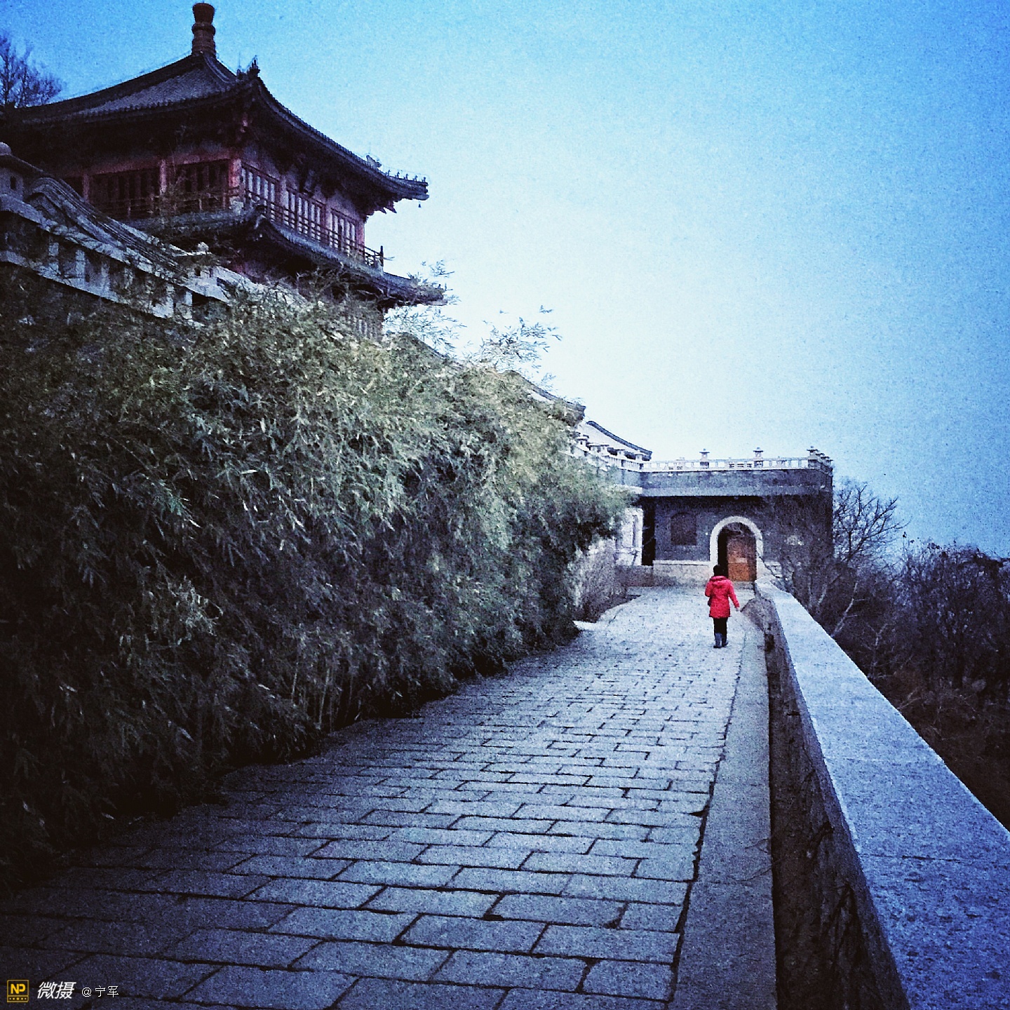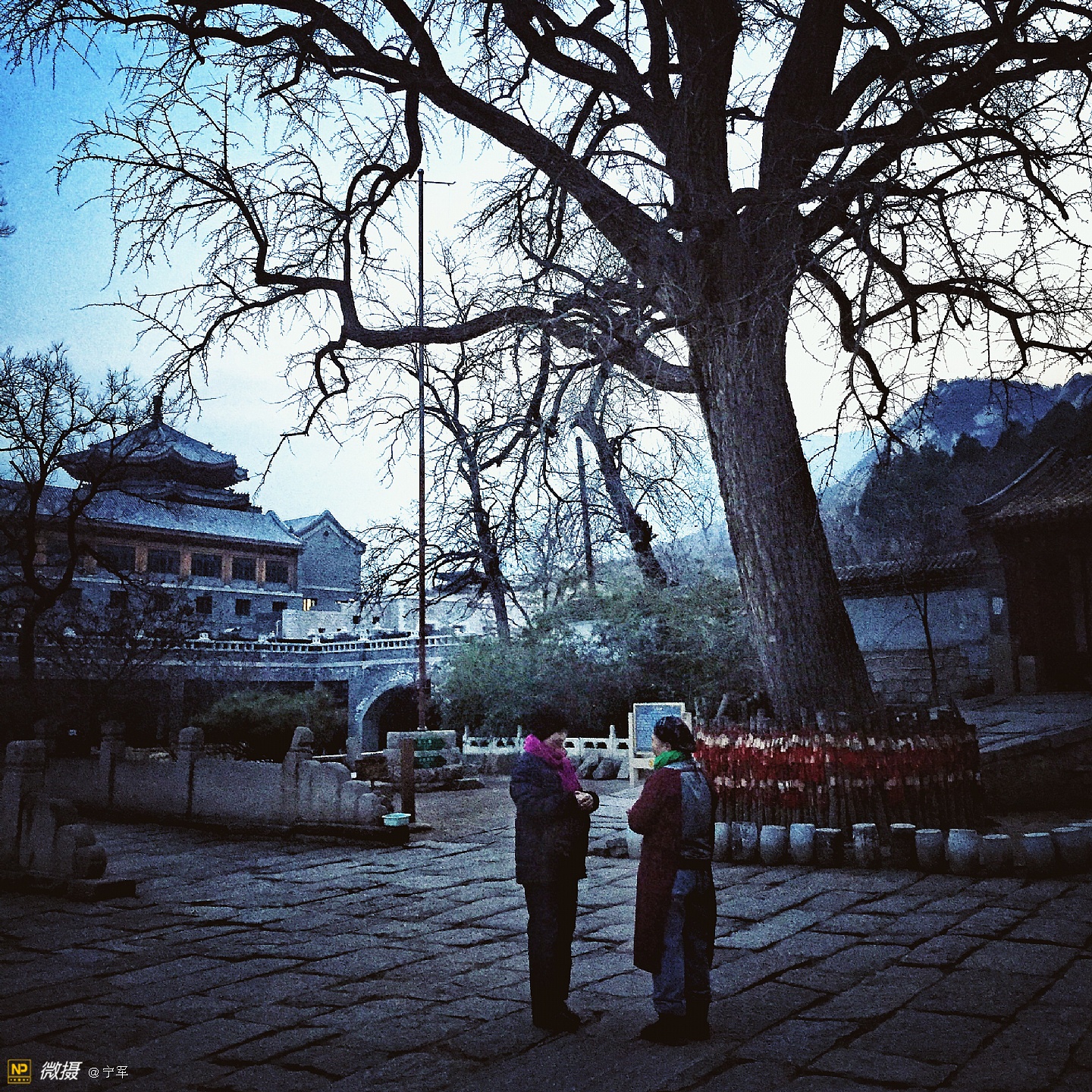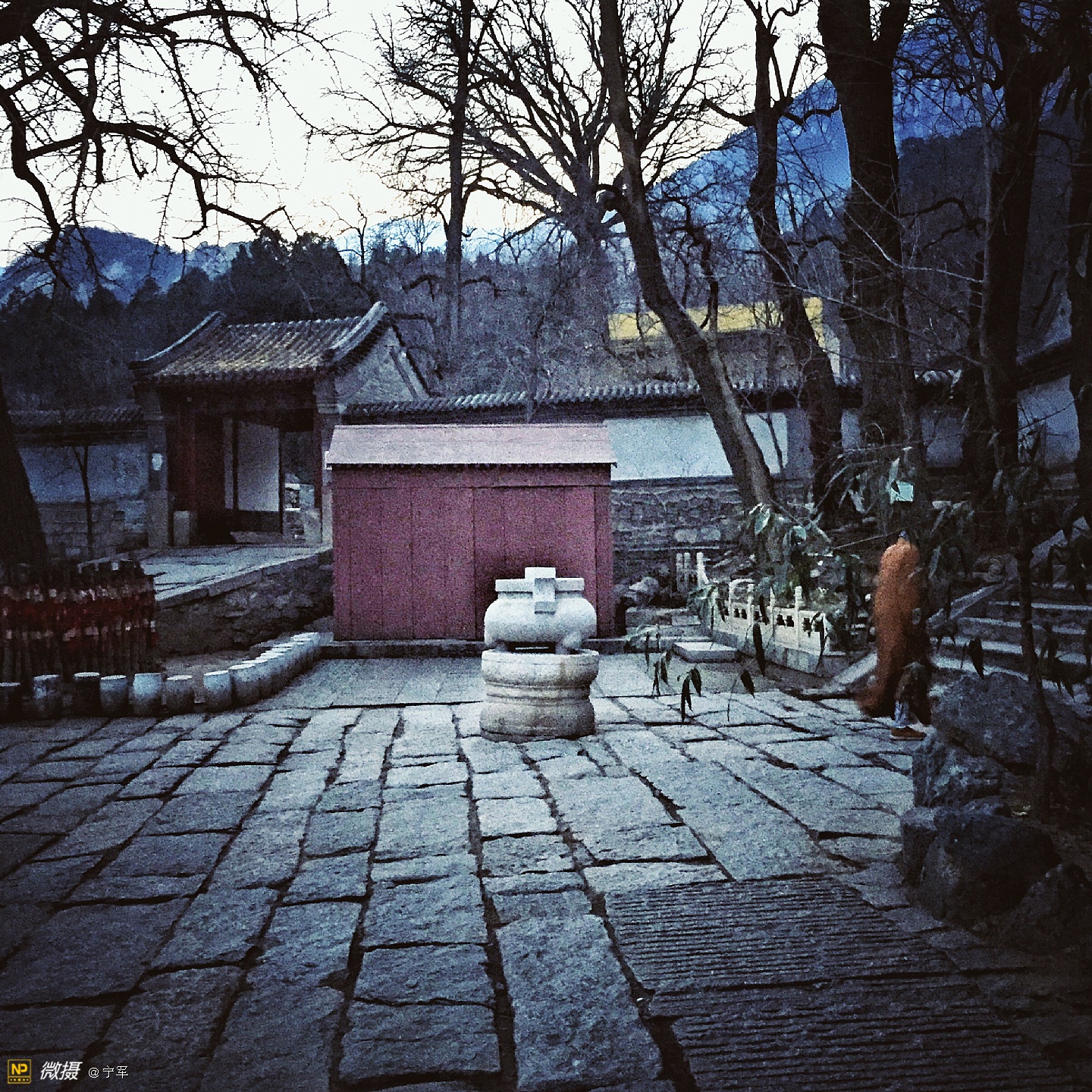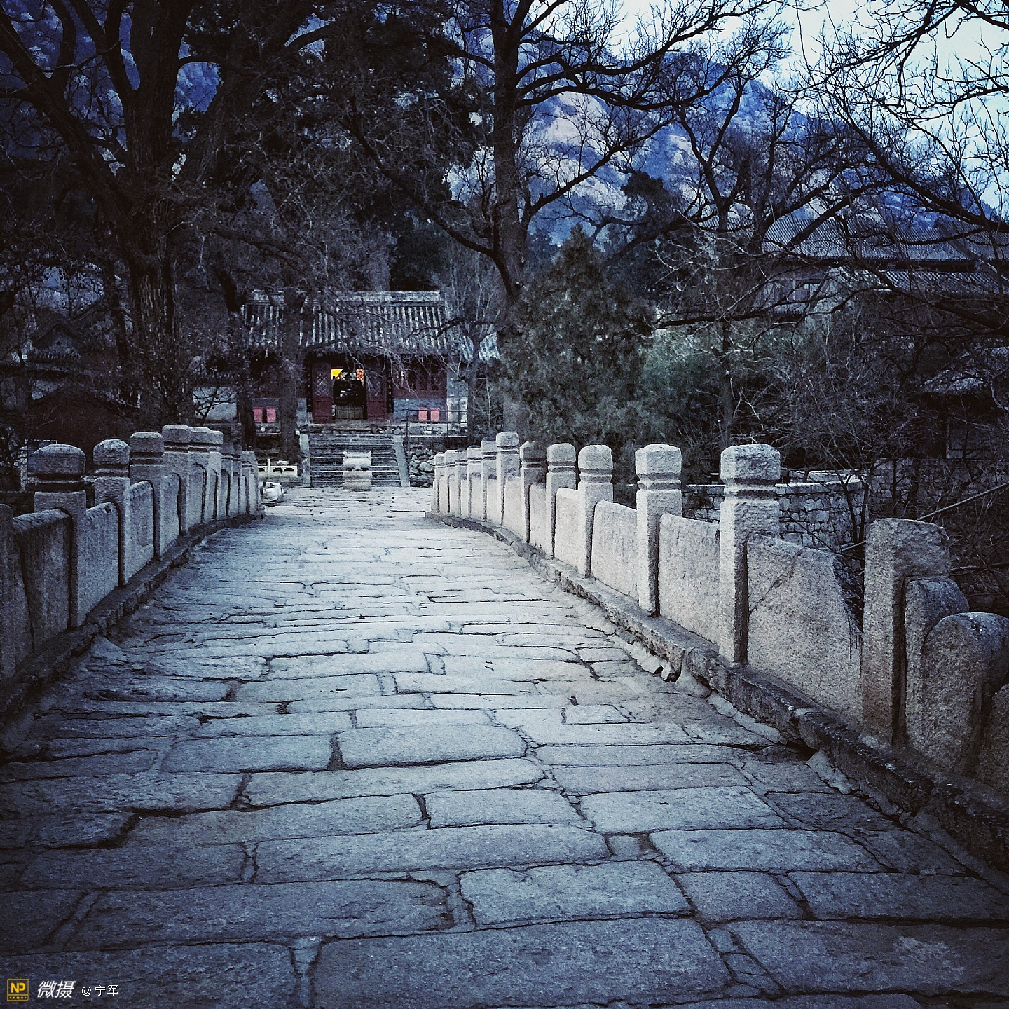 龙泉寺,北京西郊一个既古老又现代,即神秘又开放的寺庙。在小雪过后的一天,突然想去龙泉寺。因当时在国防大学母亲处,距龙泉寺二十多公里,加之与儿子的默契,即刻驱车前往龙泉寺。到龙泉寺已近傍晚17:00,微弱的冬日晚霞已渐隐身,我们疾步快走赶到寺庙门口,遇上了寺庙的义工(一个可爱的小伙子):“阿弥陀佛,有需要帮助的吗?”他告诉我们大殿已经关闭,只能在院子里走走了。好吧!能看多少看多少,也满足一下我的好奇心!寺庙里很幽静,偶尔看到一些义工,好舒服的感觉。我如饥似渴的拍着,当夜色降临,我还能拍什么呢?这是个神奇的地方,一边是高大的庙宇,一边是现代的住宅。朗朗的诵经声从禅房传出,明亮的灯光处摆放着绿色的植物,宽大的厨房很多人在忙着·····禅—人—自然,和谐温暖的画面,在寒冷的冬夜里,温暖的心·····夜幕降临,依依不舍地步出寺院的大门,宗教文化的与时俱进:道法自然····· 写于—北京中央音乐学院