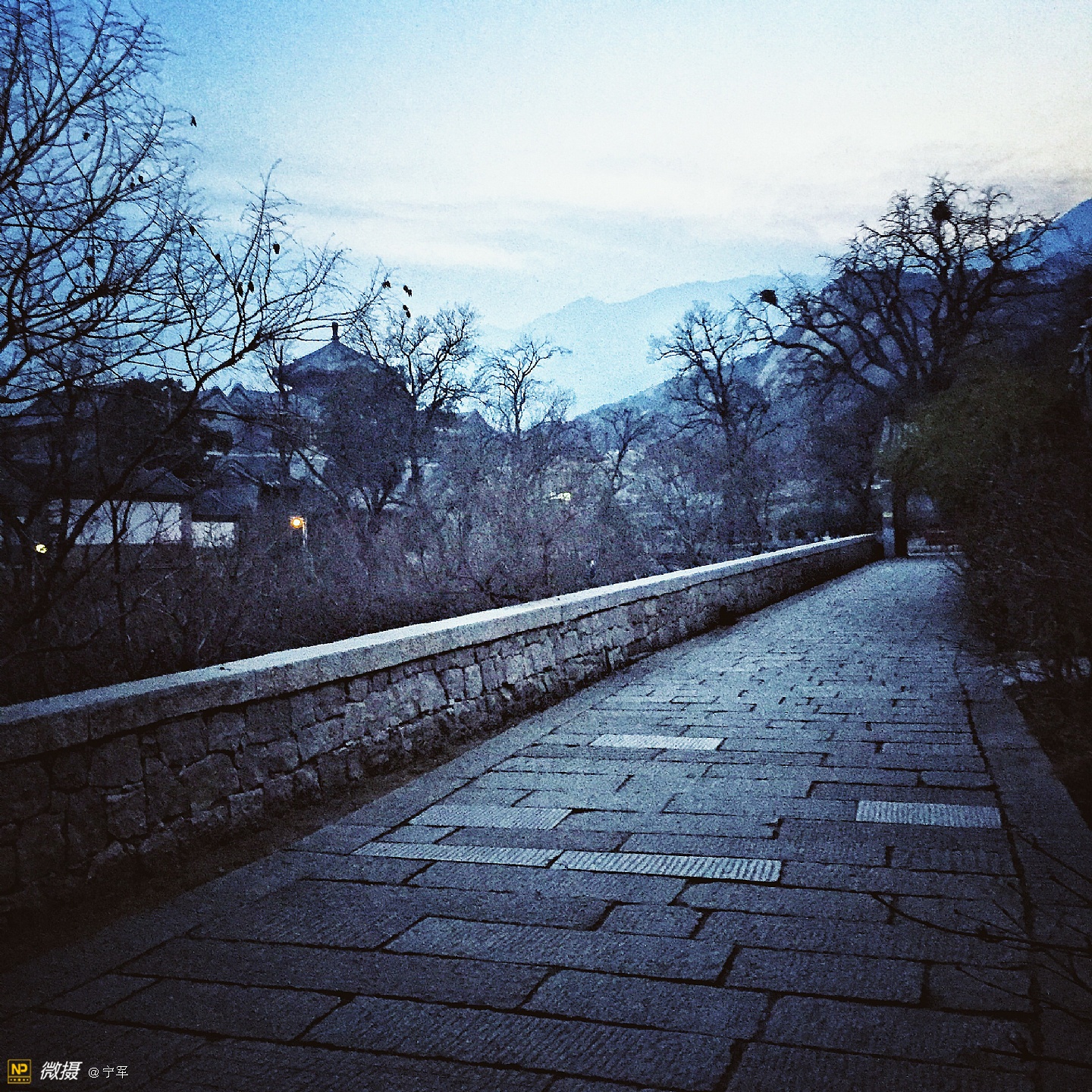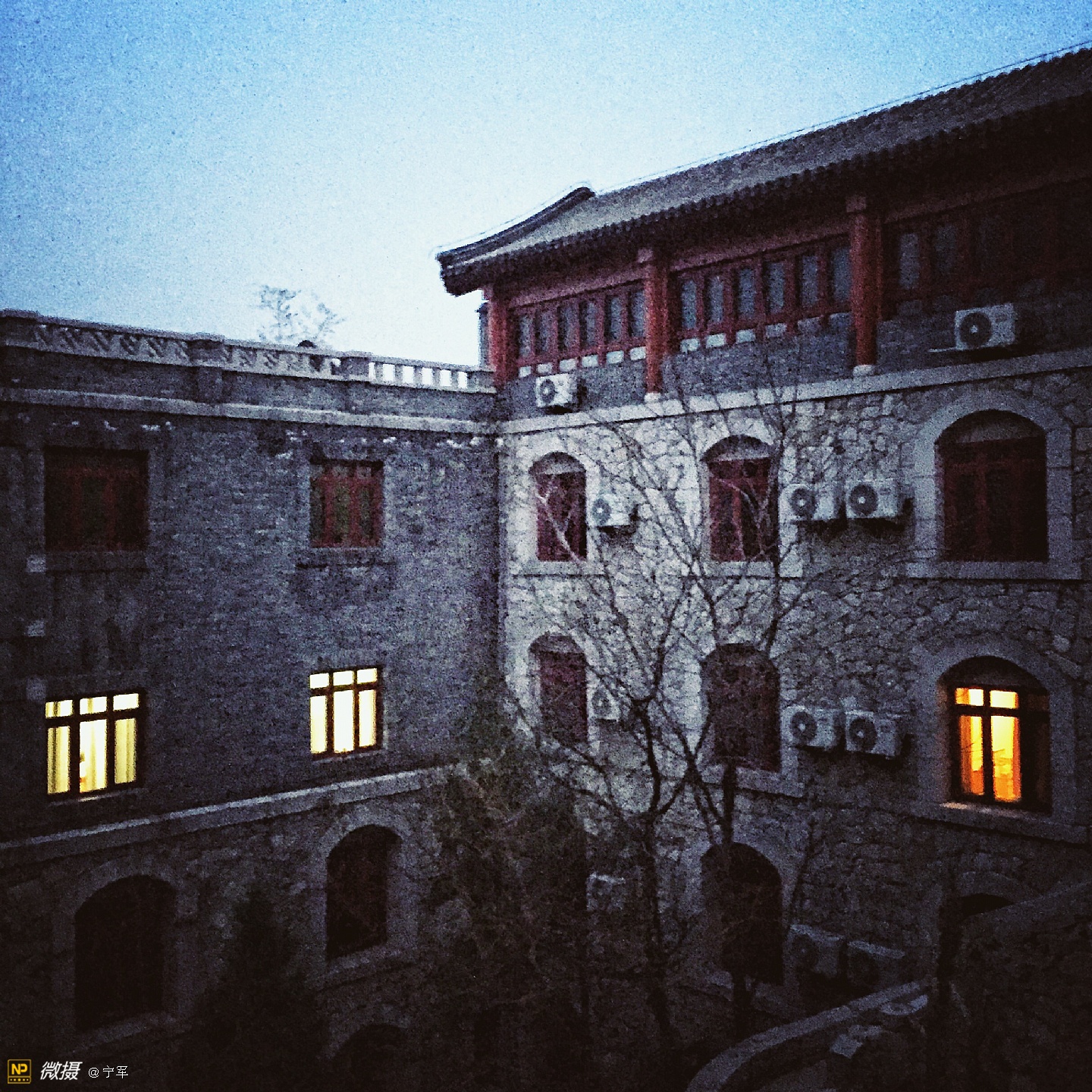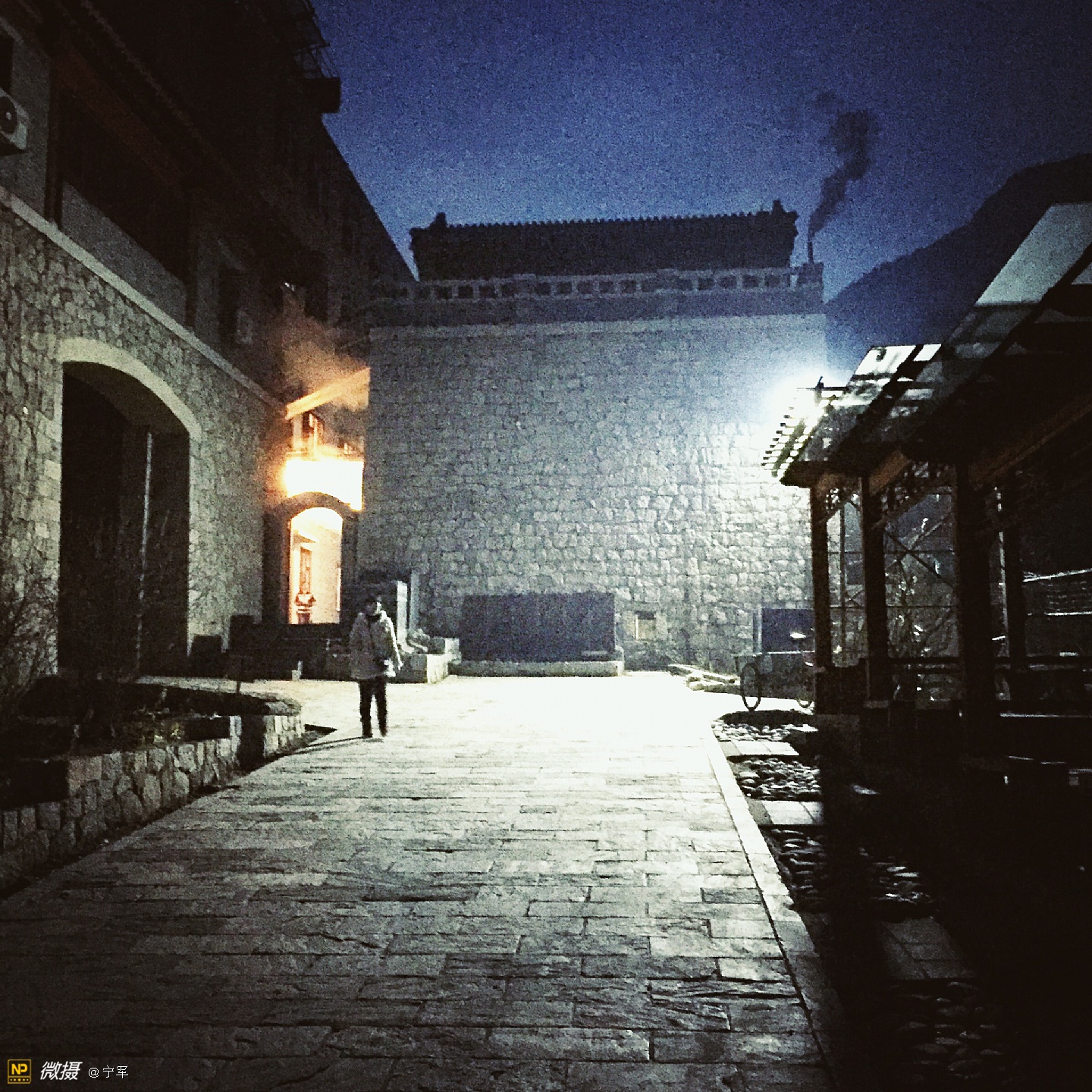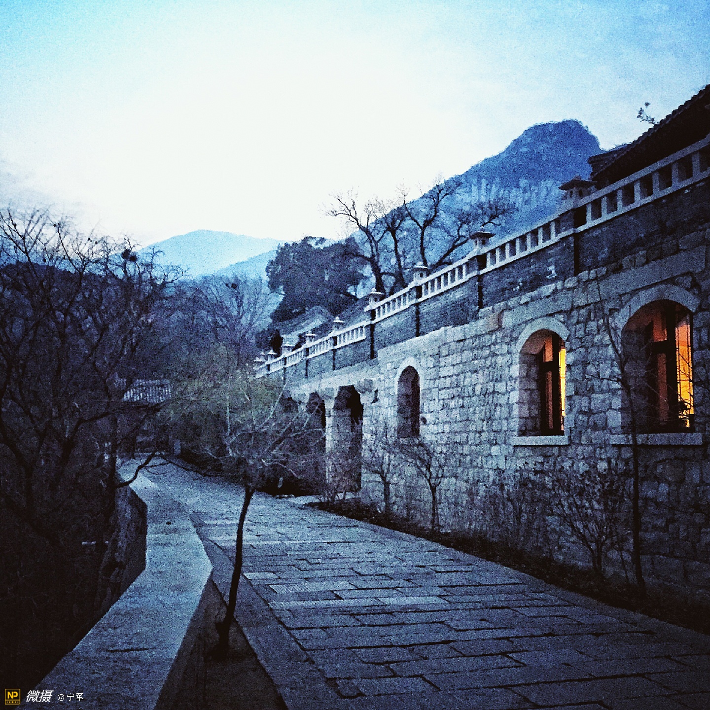 龙泉寺,北京西郊一个既古老又现代,即神秘又开放的寺庙。在小雪过后的一天,突然想去龙泉寺。因当时在国防大学母亲处,距龙泉寺二十多公里,加之与儿子的默契,即刻驱车前往龙泉寺。到龙泉寺已近傍晚17:00,微弱的冬日晚霞已渐隐身,我们疾步快走赶到寺庙门口,遇上了寺庙的义工(一个可爱的小伙子):“阿弥陀佛,有需要帮助的吗?”他告诉我们大殿已经关闭,只能在院子里走走了。好吧!能看多少看多少,也满足一下我的好奇心!寺庙里很幽静,偶尔看到一些义工,好舒服的感觉。我如饥似渴的拍着,当夜色降临,我还能拍什么呢?这是个神奇的地方,一边是高大的庙宇,一边是现代的住宅。朗朗的诵经声从禅房传出,明亮的灯光处摆放着绿色的植物,宽大的厨房很多人在忙着·····禅—人—自然,和谐温暖的画面,在寒冷的冬夜里,温暖的心·····夜幕降临,依依不舍地步出寺院的大门,宗教文化的与时俱进:道法自然····· 写于—北京中央音乐学院