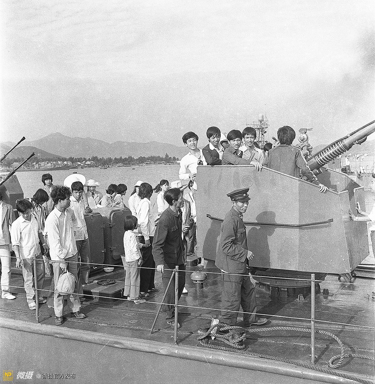 1982年,海南某学校教师参观参加过西沙海战的军舰