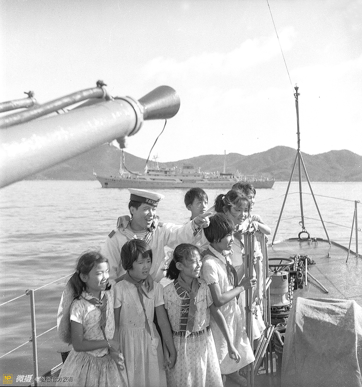 1983年,守卫西沙的军人子女承护卫艇到军港外过“六一”儿童节