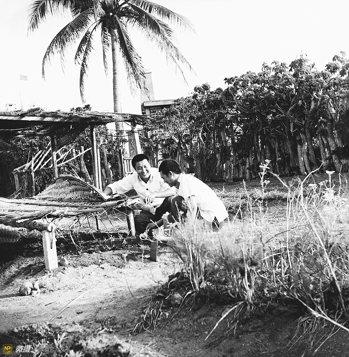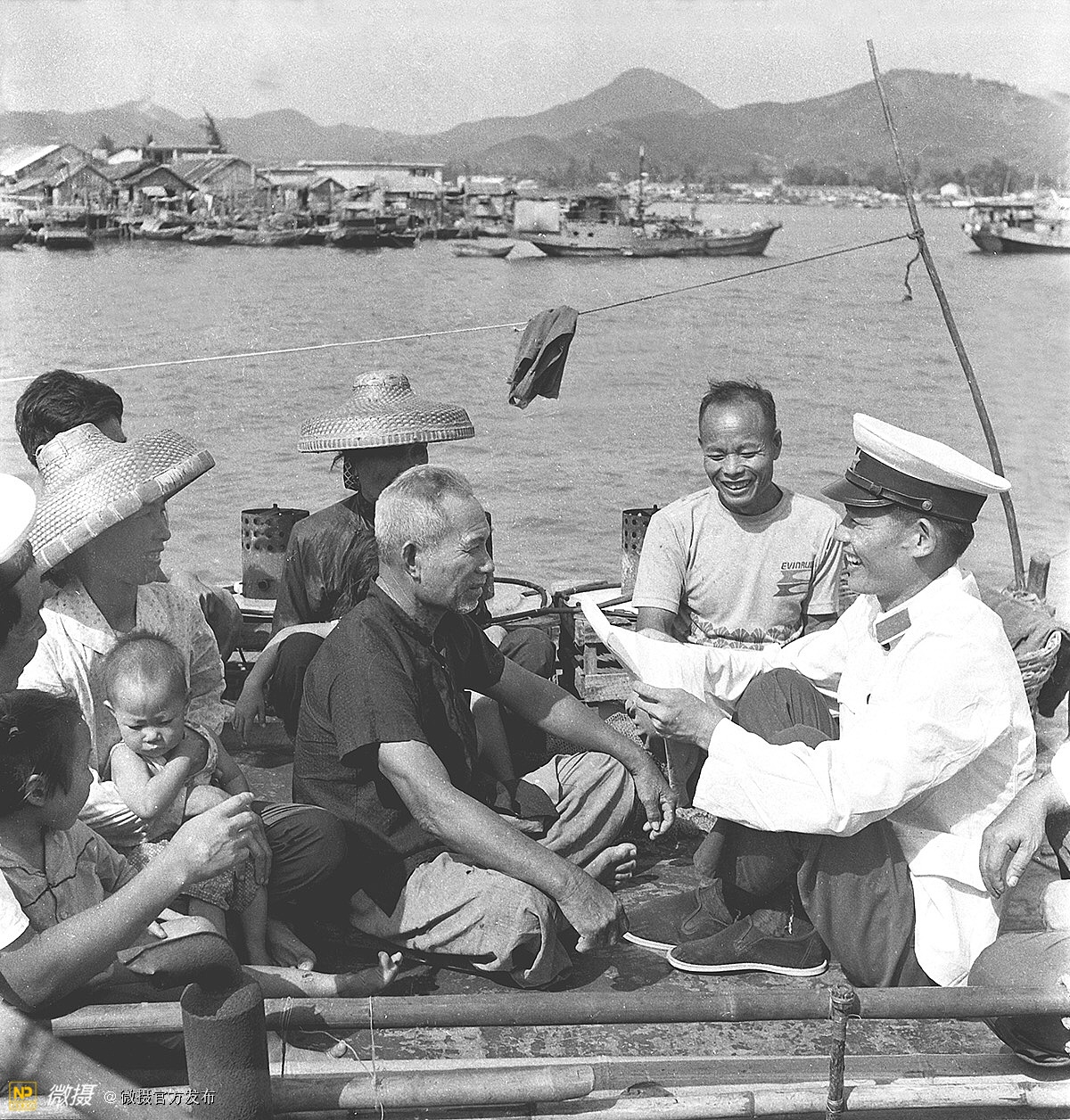 1984年,守卫西沙某部军官在后方基地军民共建点,向渔民宣讲中央一号文件