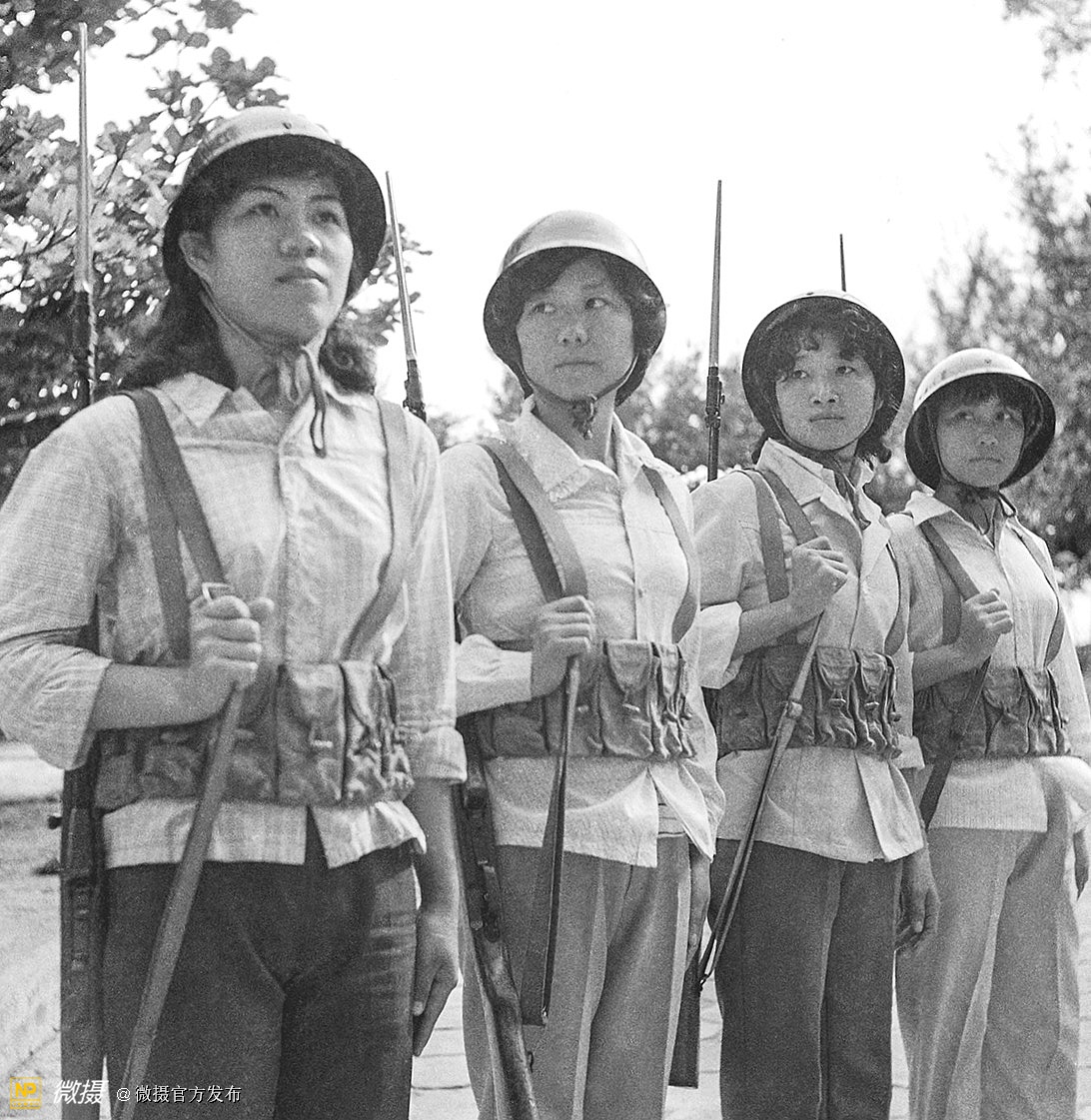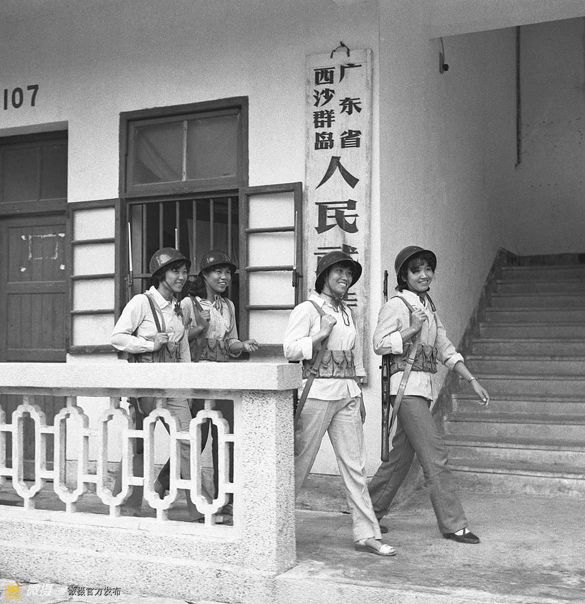 1983年10月,从西沙群岛人民武装部走向打靶场的西沙女民兵