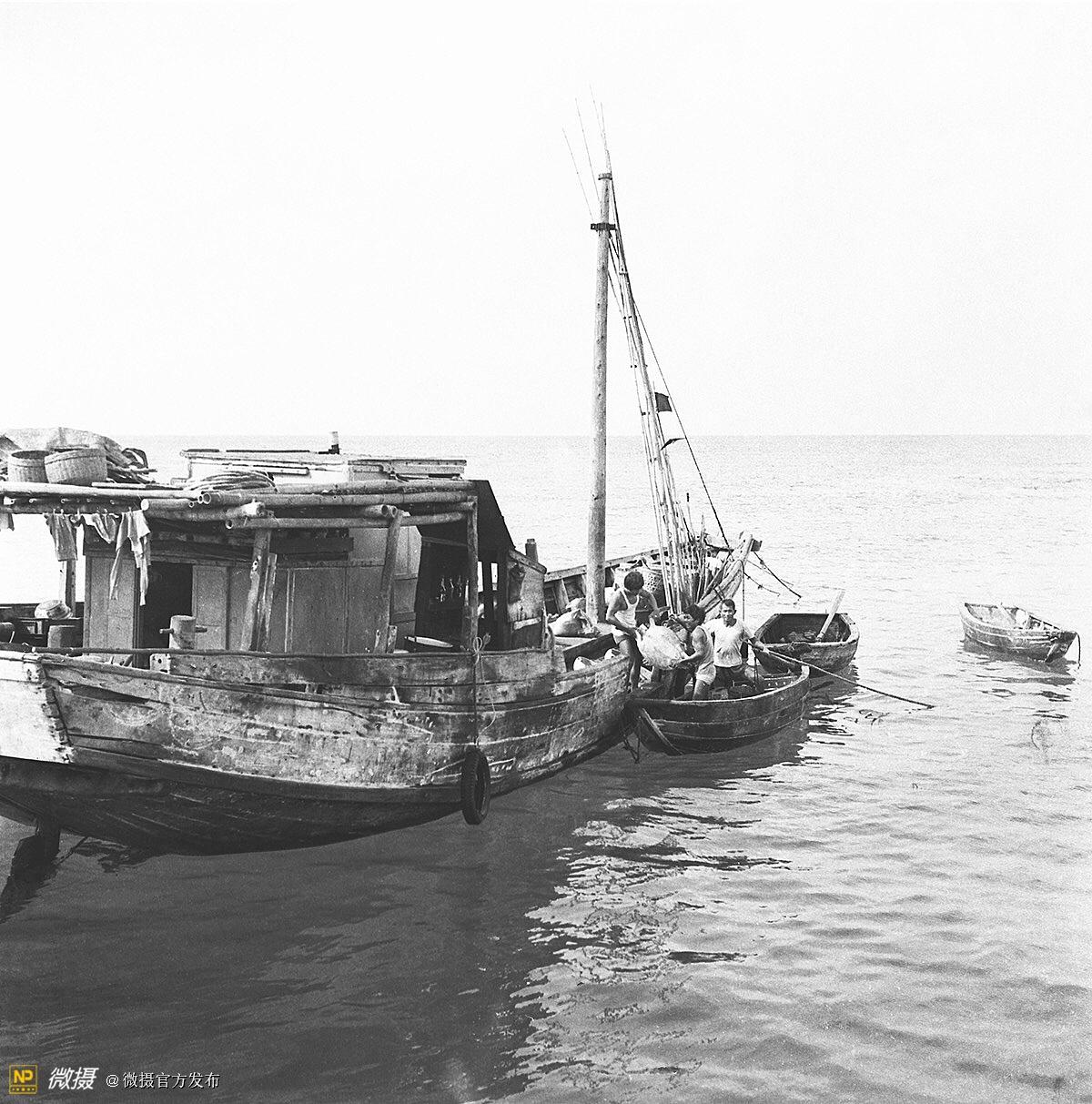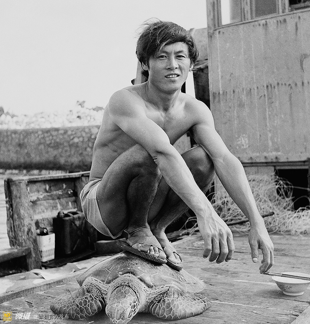 1983年夏,东岛外海正在往大船上卸海龟的渔民