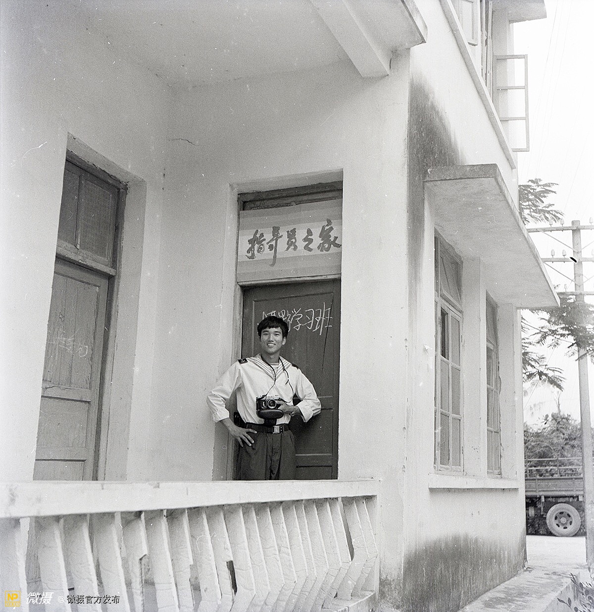 1984年,一名在“指导员之家”摄影学习班前留影的士兵