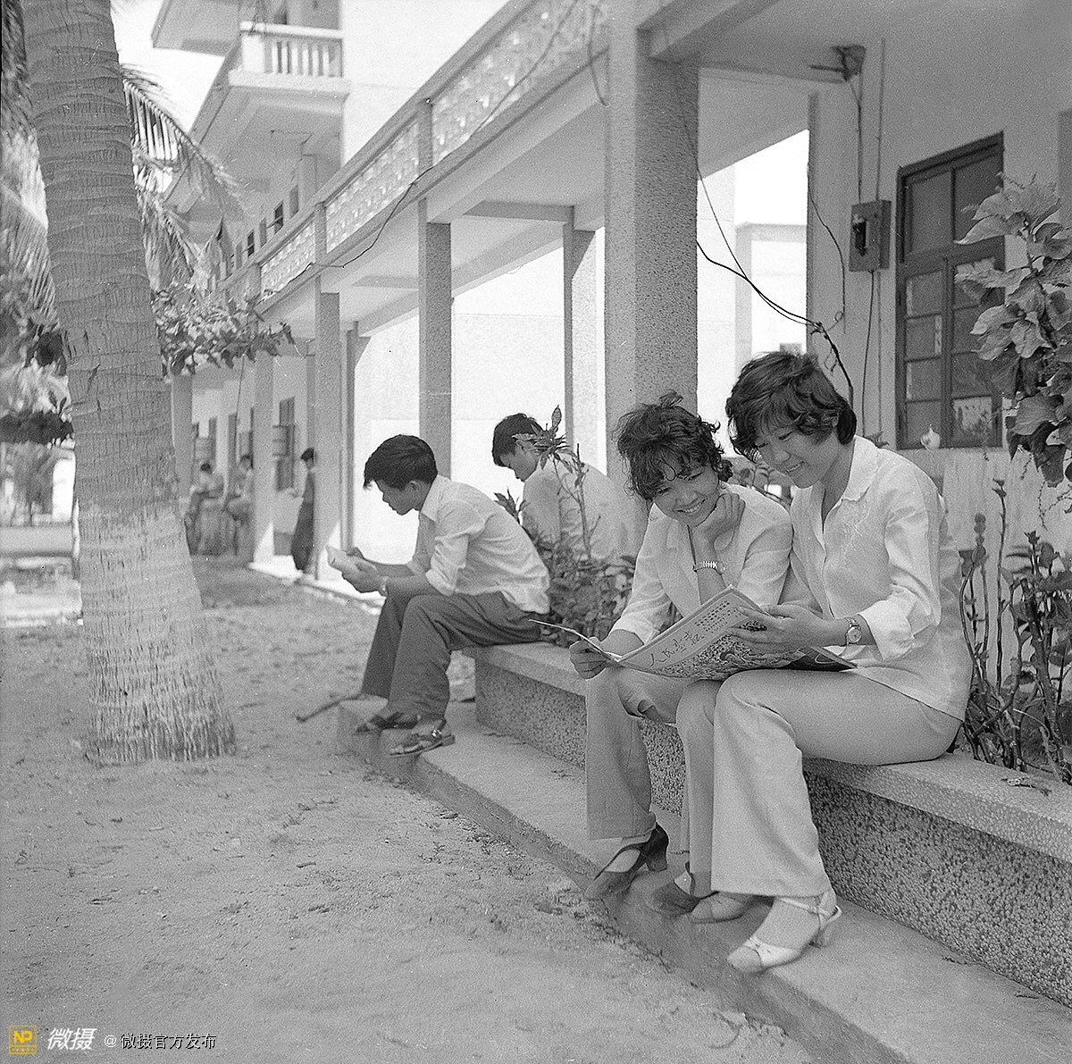 1985年,西沙某部军人女儿在后方基地学校看《大众摄影》