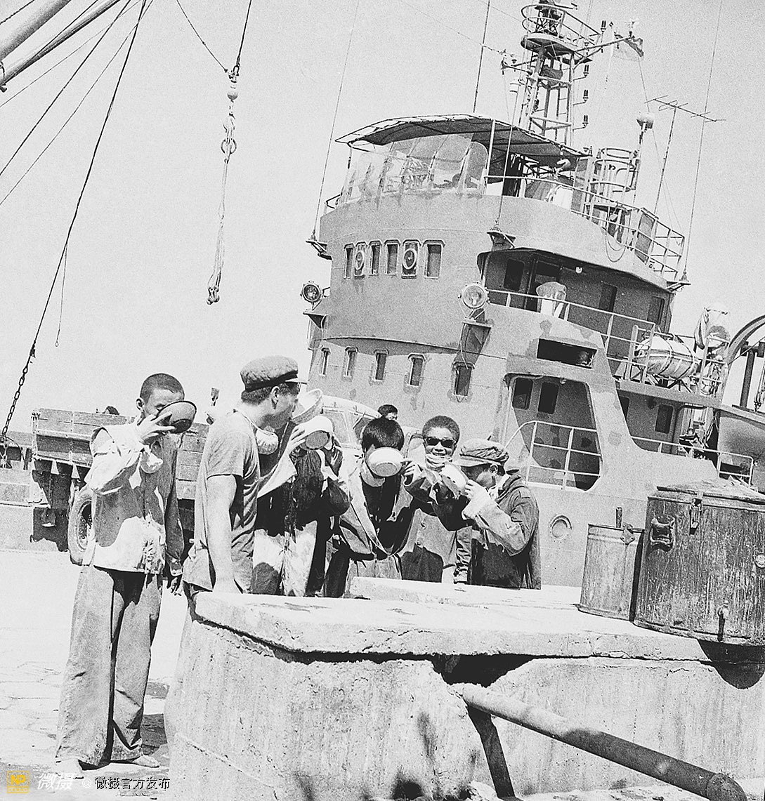 1984年5月,正在从大陆开往西沙群岛的船上卸水泥的海军西沙工程部队官兵