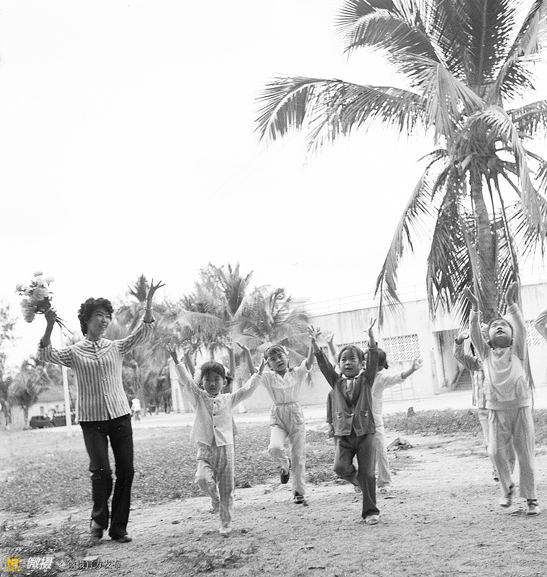 1984年,3月步行往附近黎村上学的西沙军人子女