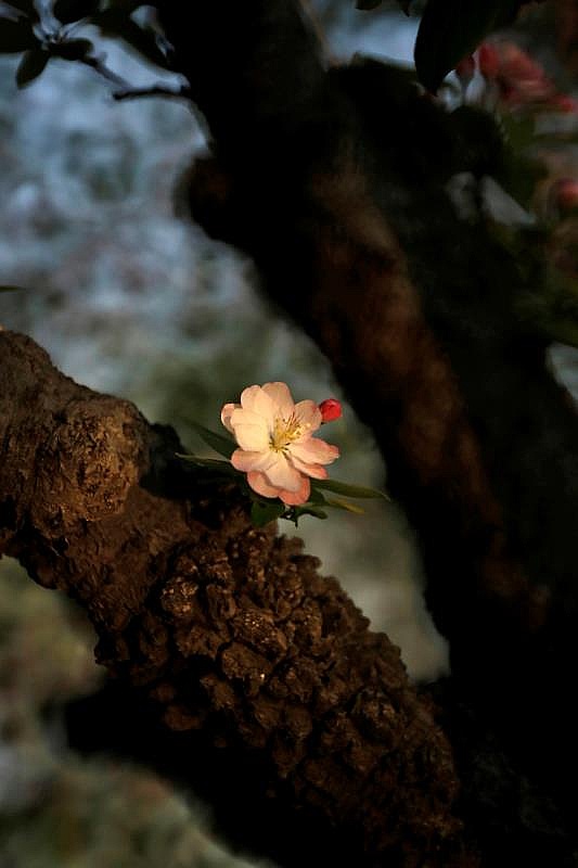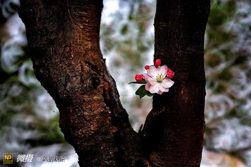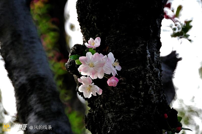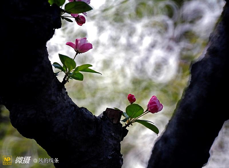 海棠花自古以来就是雅俗共赏的名花,虽无香,但她一样花姿潇洒、花开似锦、艳丽妩媚。她不与牡丹比高贵,不与玫瑰比馨香,于天地自然间无香自芬芳