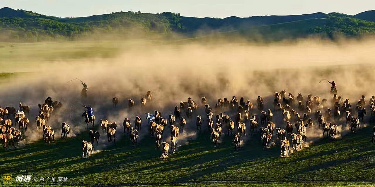 第三日;敖包吐南山拍摄日出、晨雾,上午拍摄彪悍的蒙古族汉子纯正精湛的蒙古族套马。下午:松树井子风光,花轱辘苔俯拍牛羊群饮水,齐齐格湖晚霞、湖面倒影直至日落。第四日:透风沟日出,光影中起伏的山峦,灵动的蓝色河流,南井牛羊群出牧,南井周边风景;线条状的麦田。下午:拍摄逆光下的小型奔马群(马匹数量300-500匹)动势强劲、晚霞下的剪影直至日落。