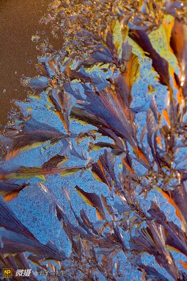 《不一样的霜花拍摄》 不一样的拍摄角度;不一样的拍摄时间;不一样的拍摄手法;不一样的场景布置;不一样的后期制作;不一样的霜花呈现。色彩迷离,似梦似幻;焰火喷发,绚丽多彩;宇宙裂变,神秘莫测。不一样的想法,会拍出不一样的魔幻世界。