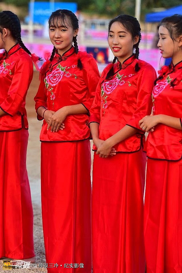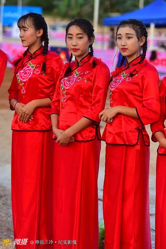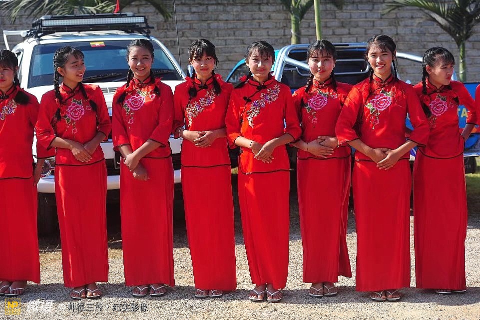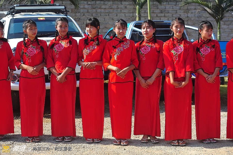 年初二,缅甸掸邦北部城市腊戌果敢民族春节联欢会上,果敢民族的侄姑娘们穿着中国红,其红色彩加漂亮的美貌,压倒了一片色眼。不信,你就往下看看。