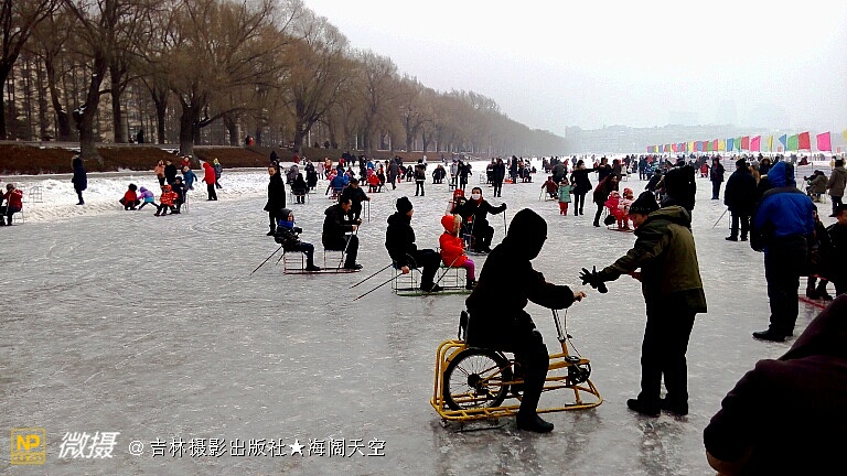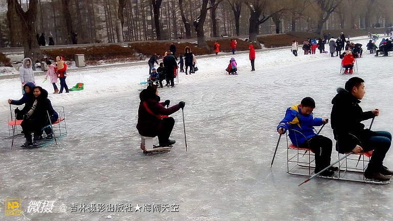 冰上自行车奇特,双人爬犁奋力滑。