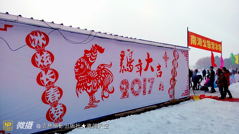 鸡年大吉人欢笑,溜冰场上趣事照。