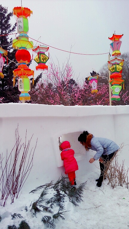 提携艳丽孩童,感受冰雪世界。