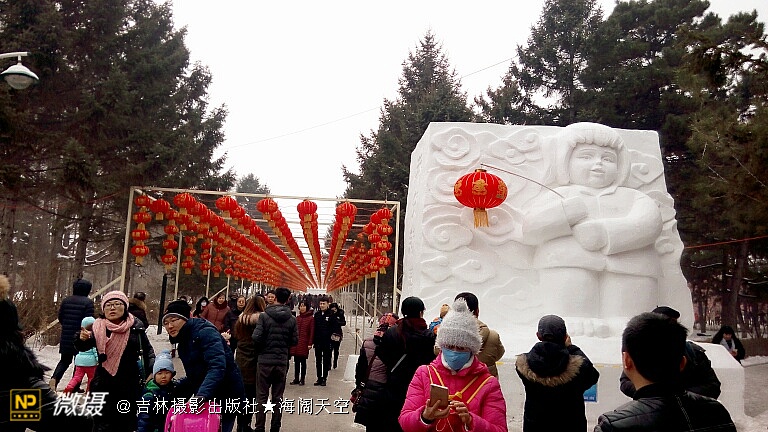 冰雪世界人如潮,玉树琼花拍个照。