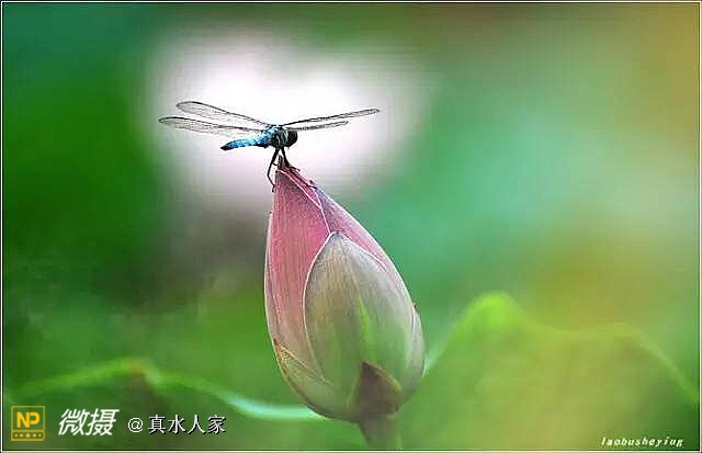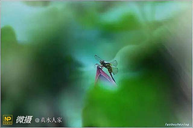 蜻蜓,轻轻地,落在,烟波袅袅的荷尖上,幻化成,一帘幽梦,痴醉绵缠,随风,曼舞若隐若现……