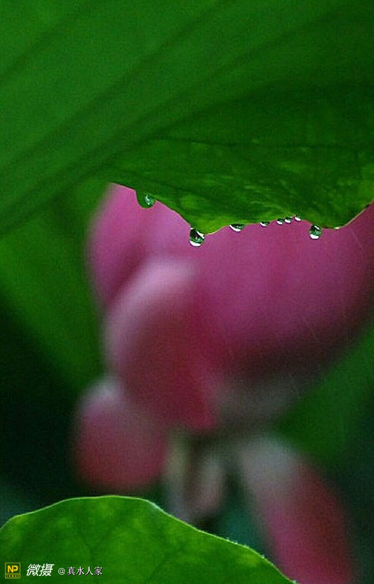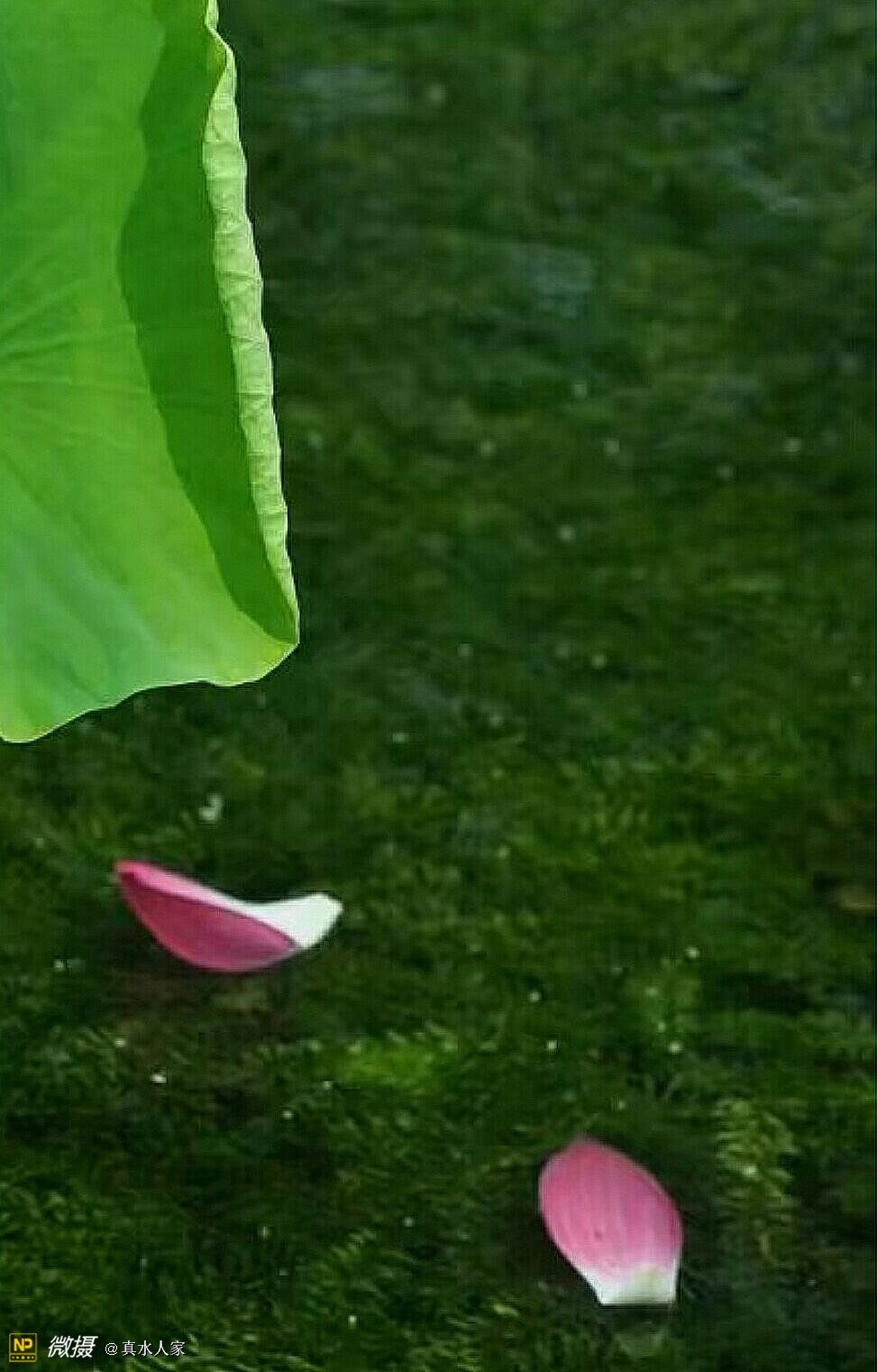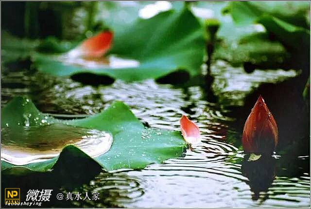 微雨,轻风摇碧树,荷叶罗裙,羞涩的你,娇花妩,阵阵清香,已飘远去……