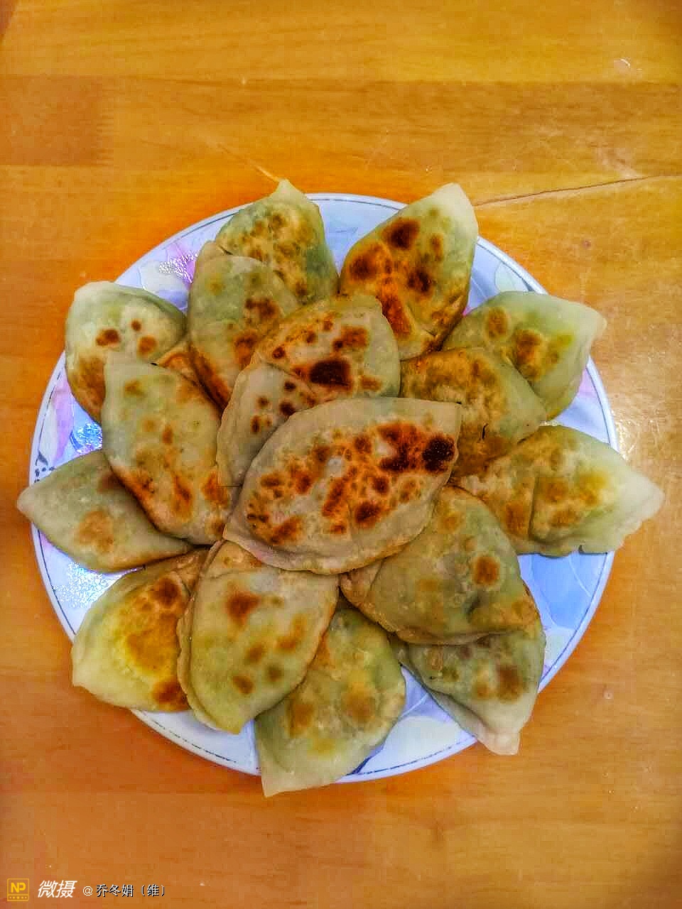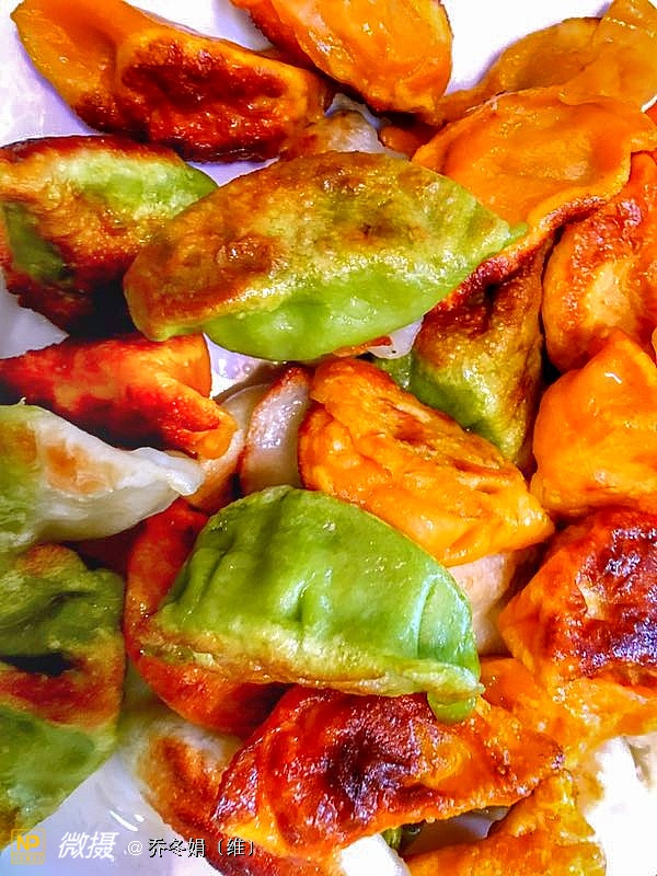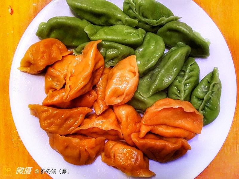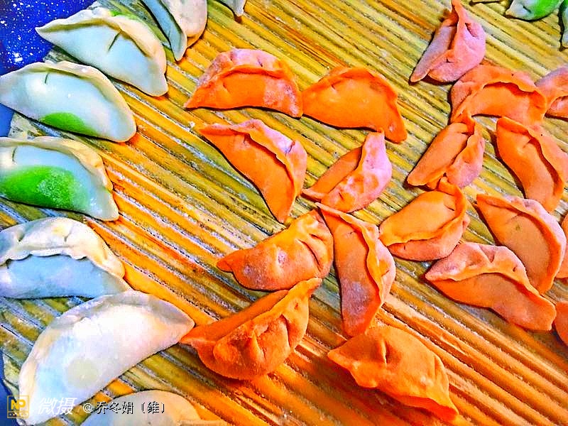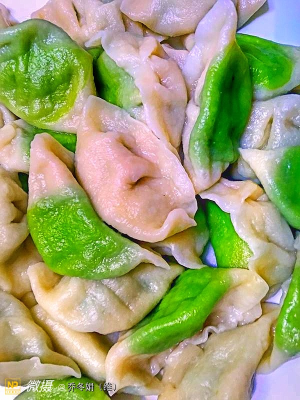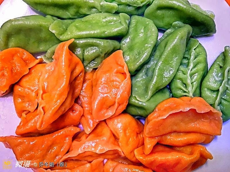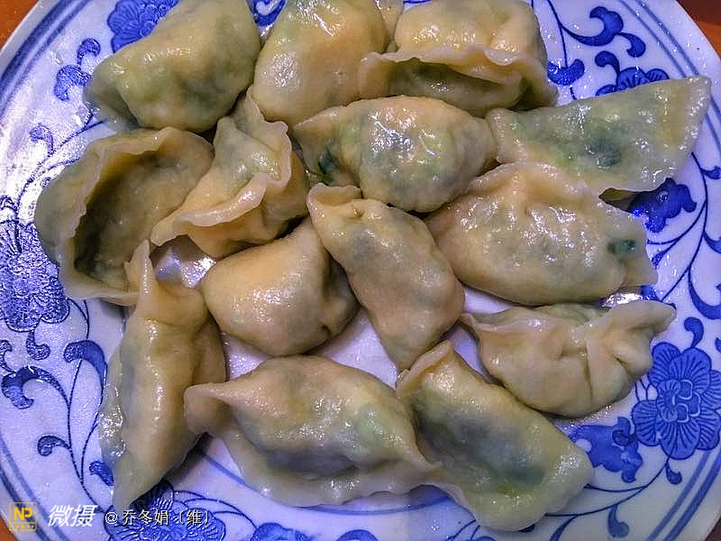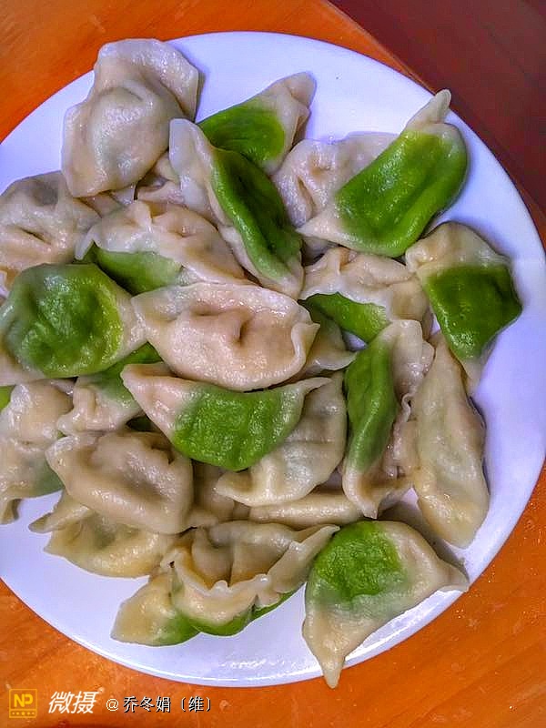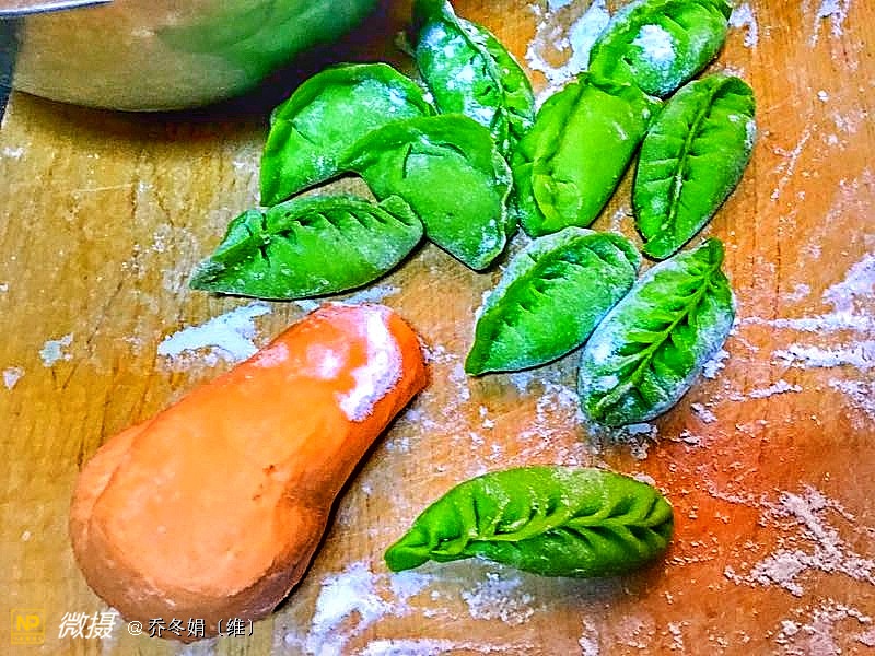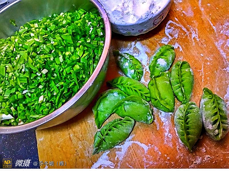 绿色的树叶形饺子、是我83岁的母亲包的……