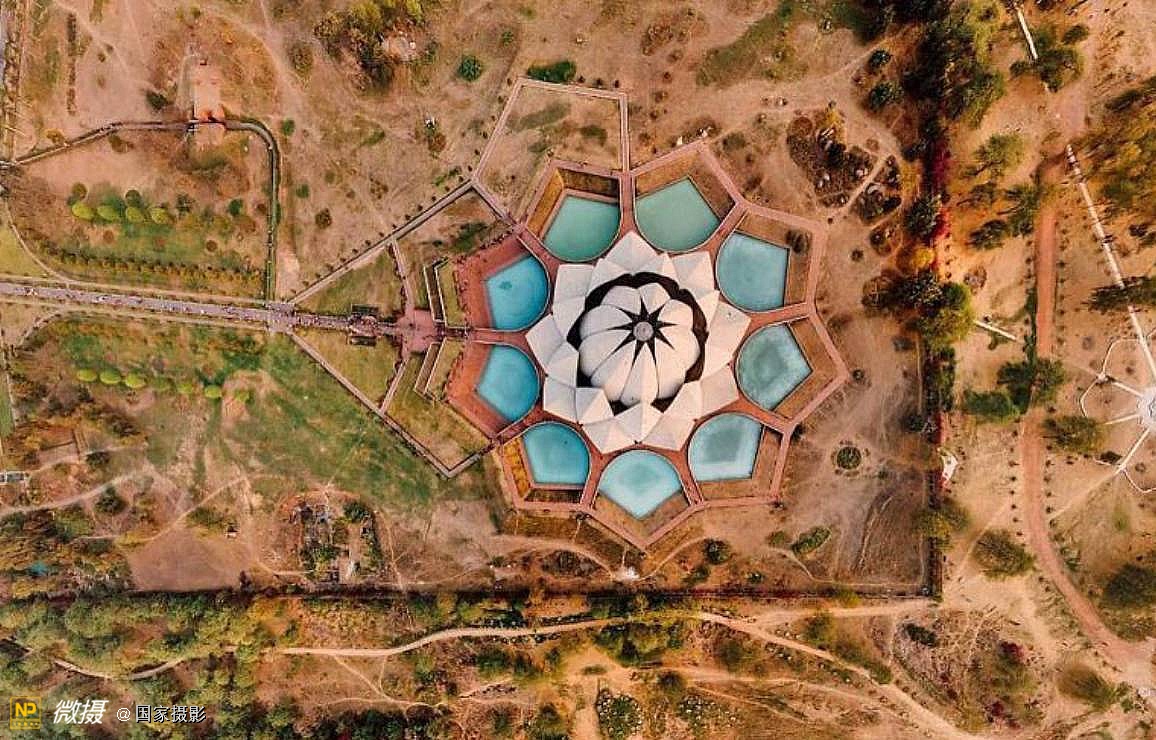 印度新德里标志性的建筑就是莲花庙了,也叫巴哈伊寺。从高空俯瞰就像是一朵半开的莲花,周围的9大清池又为莲花增添添了几分灵气。这里是印度人的骄傲,也是一大旅游看点。