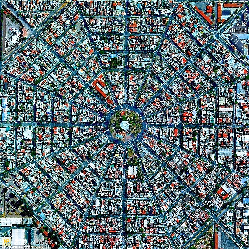 墨西哥城城中心看起来就是一个很工整的八边形,看来当初的规划者也是很用心的。这只是墨西哥城的一角,实际上的墨西哥城是不规则形状的。