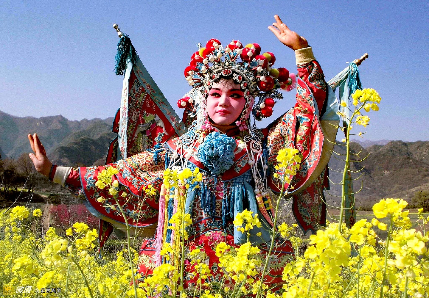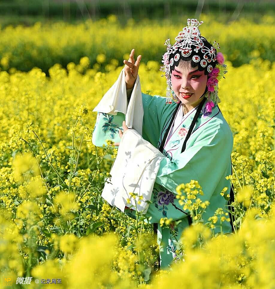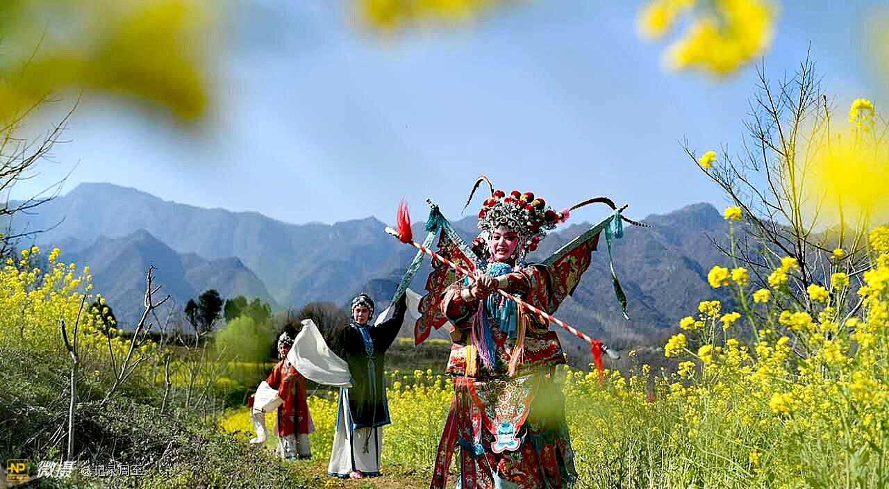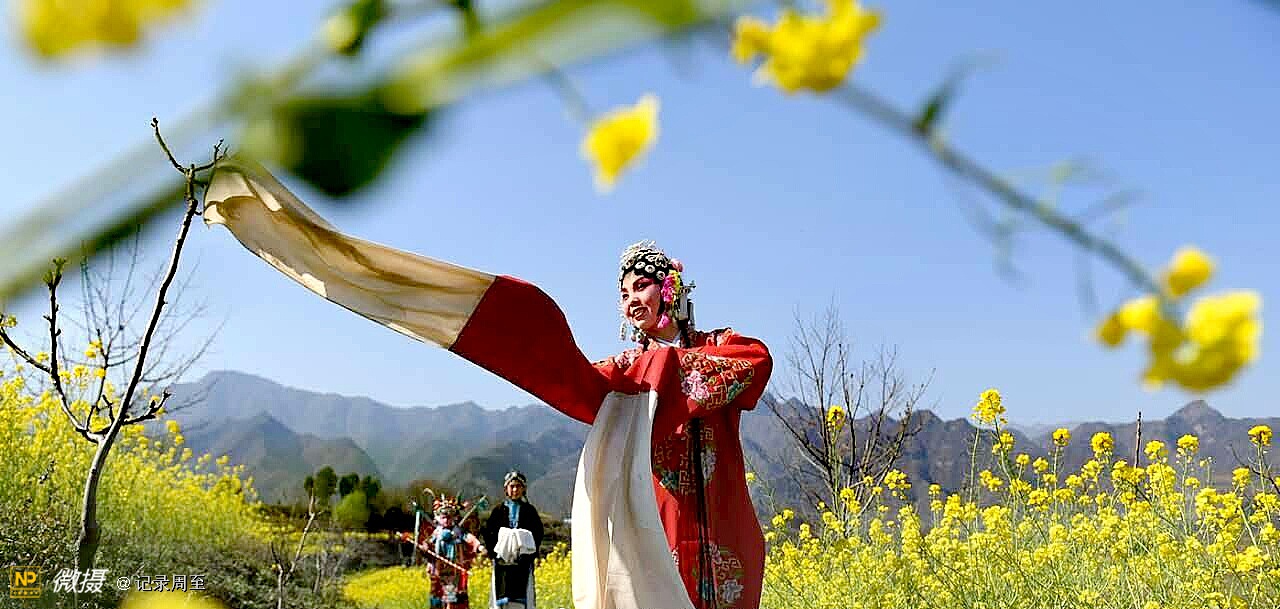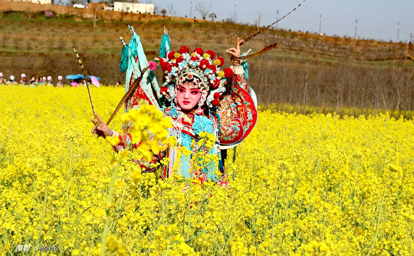 周至油菜花海撞上传统戏剧、邂逅旗袍美女!